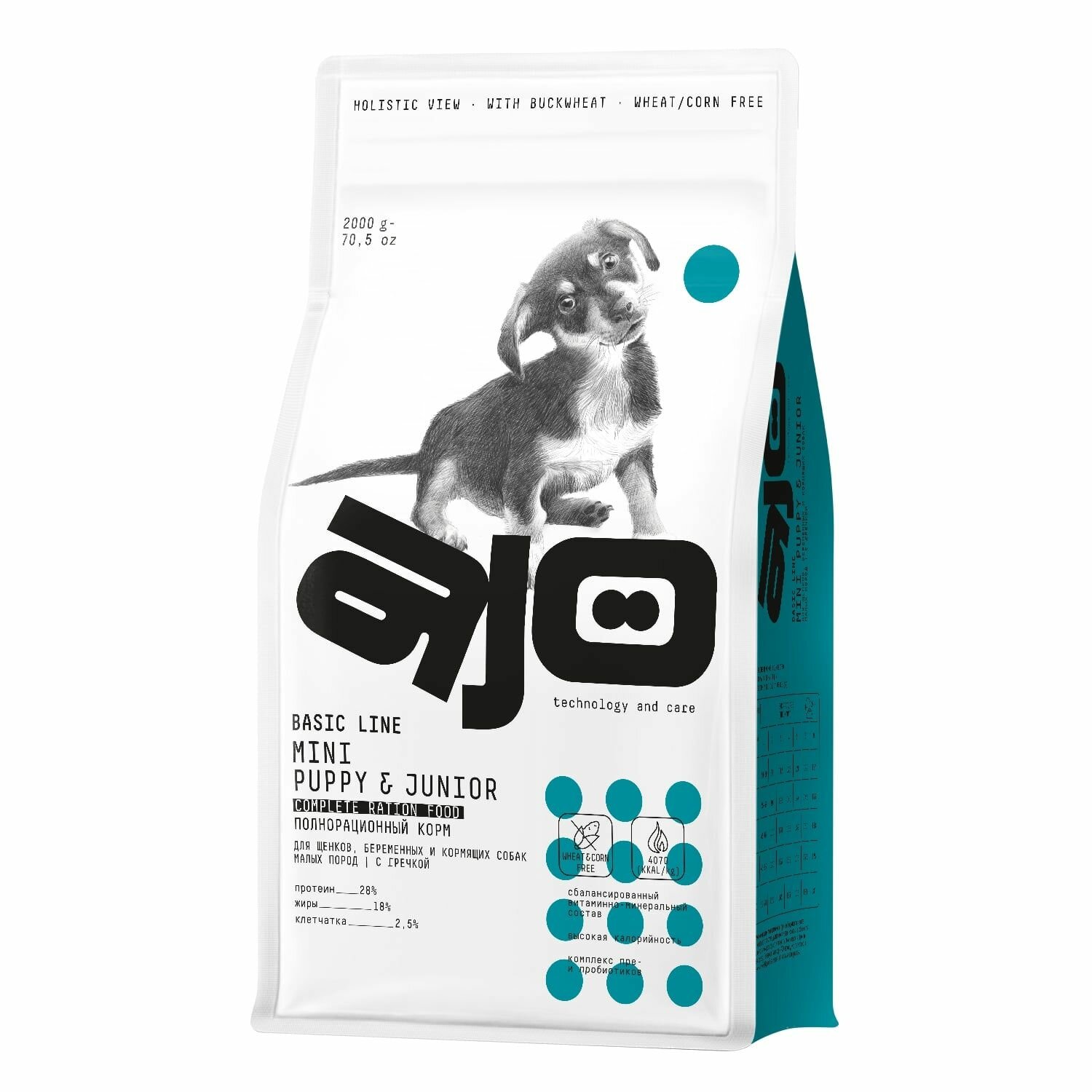 Сухой корм AJO Dog Mini Puppy & Junior с гречкой для щенков малых пород 2 кг: сравнение цен, характеристики, фото, актуальное наличие и цены.
