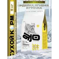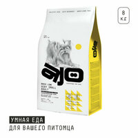 Полнорационный сухой корм AJO для взрослых собак маленьких пород с индейкой, ягненком и гречкой.