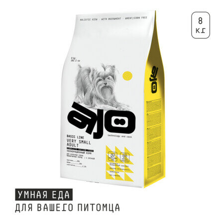 Полнорационный сухой корм AJO создан с высокой питательностью и большим количеством белка для восполнения энергопотерь, характерных для собак миниатюрных пород.