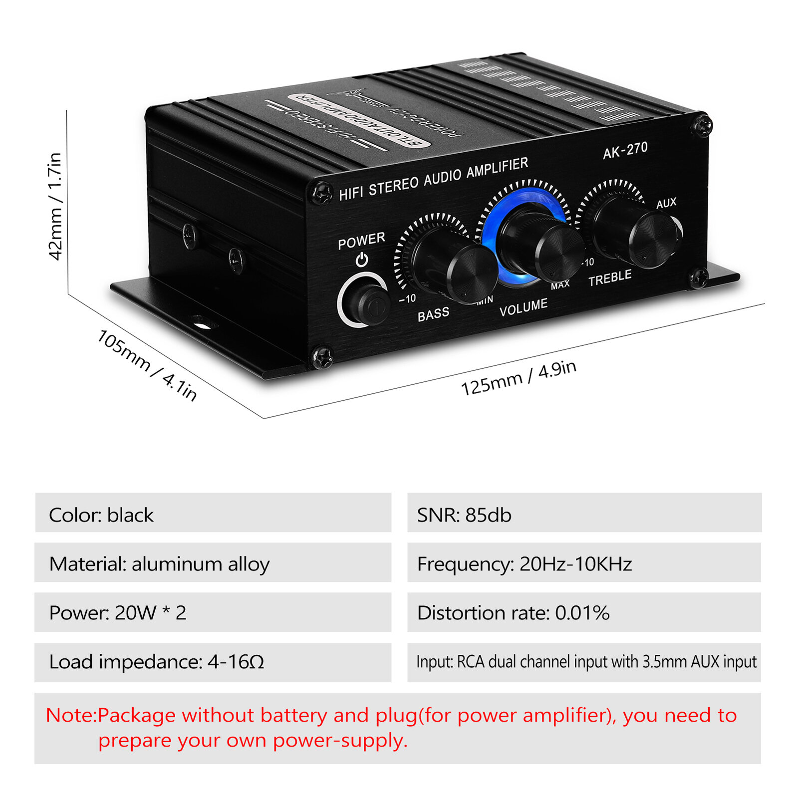 AK270 Мини 2-канальный стереоусилитель мощности Портативный аудиоусилитель звука с входом AUX для автомобильных и домашних акустических систем: сравнение цен, характеристики, фото, актуальное наличие и цены.