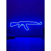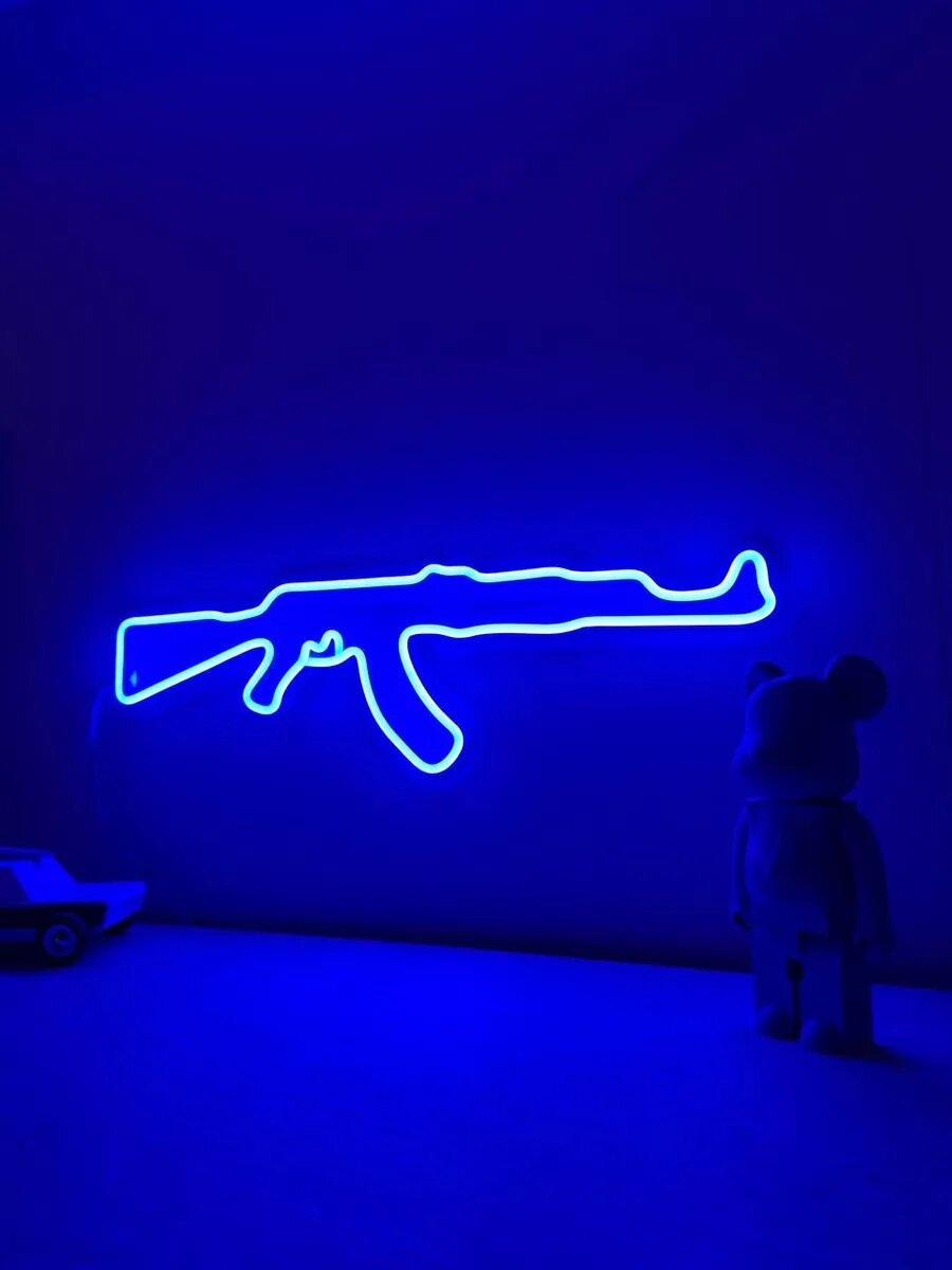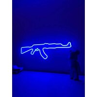 Неоновый светильник для дома в виде автомата АК 47 — это яркий и оригинальный элемент декора, который добавит позитива и радости в ваш интерьер. Светильник выполнен из высококачественных материалов и имеет прочную конструкцию, что гарантирует его долговечность и надёжность. Светильник легко крепится на стену двусторонней клейкой лентой (лента в комплекте), устанавливается на полку, не требуются специальные навыки или инструменты. Яркость регулируется с помощью пульта.