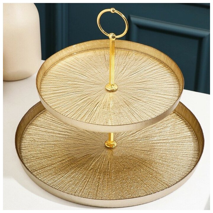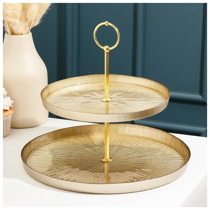 Купить AKCAM Этажерка для фруктов и десертов «Кувшинка», 2 яруса, d=21/28 см, стекло, золотая с доставкой по всей России. AKCAM Этажерка для фруктов и десертов «Кувшинка», 2 яруса, d=21/28 см, стекло, золотая: сравнение цен, характеристики, фото, актуальное наличие и цены.