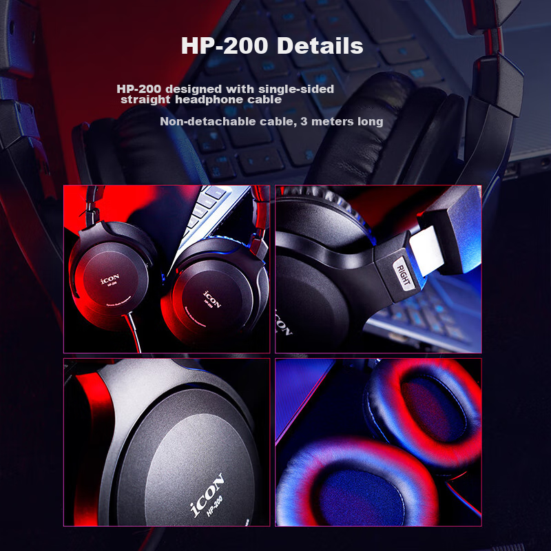 Aken HP-200 Closed-Back Monitoring Headphones, Suitable for Sound Cards, Streamers, Live Broadcasting, Music Recording, And Audio Equipment, ICON Monitoring Headphones