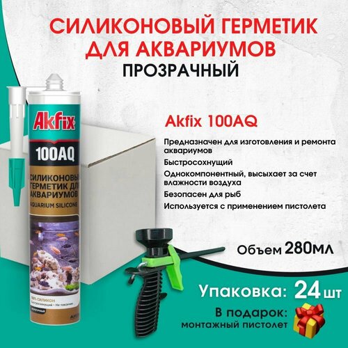 Купить Akfix 100AQ, однокомпонентный силиконовый герметик прозрачный, для изготовления и ремонта аквариумов, 280мл, 24шт с доставкой по всей России.