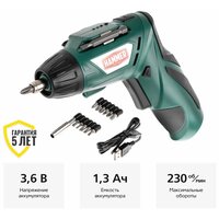 Аккум. отвертка Hammer Flex ACD3.6A с набором бит 3,6В 1,3Ач 4Нм Li-Ion