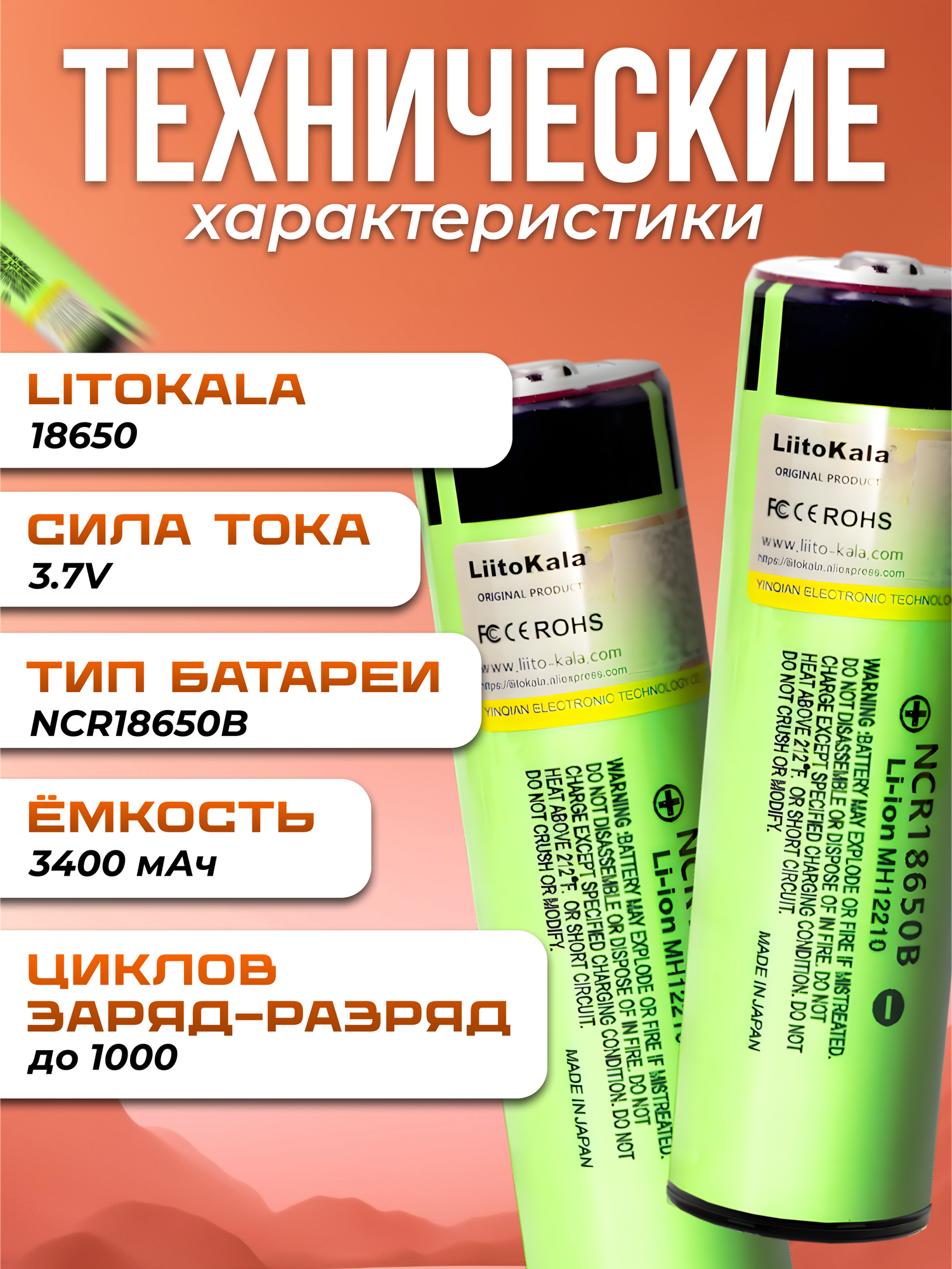 Аккумулятор 18650 Li-ion LiitoKala 3400 mAh с платой защиты от перезаряда и полного разряда 4 шт: сравнение цен, характеристики, фото, актуальное наличие и цены.