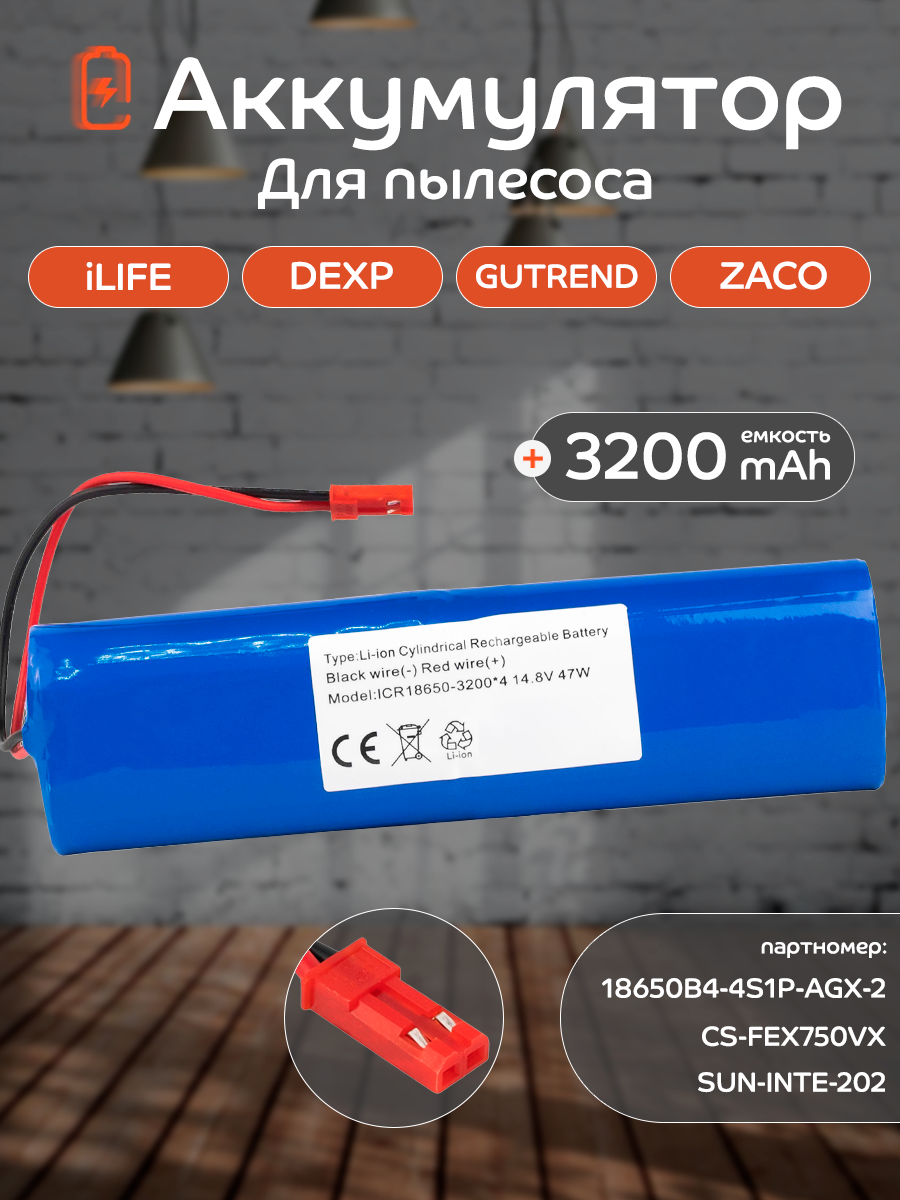 Аккумулятор 18650B4-4S1P-AGX-2 для пылесоса iLIFE V50, V3s Max, DEXP LF-200, GUTREND JOY 95, FUN 120, iLIFE X750 и др: сравнение цен, характеристики, фото, актуальное наличие и цены.