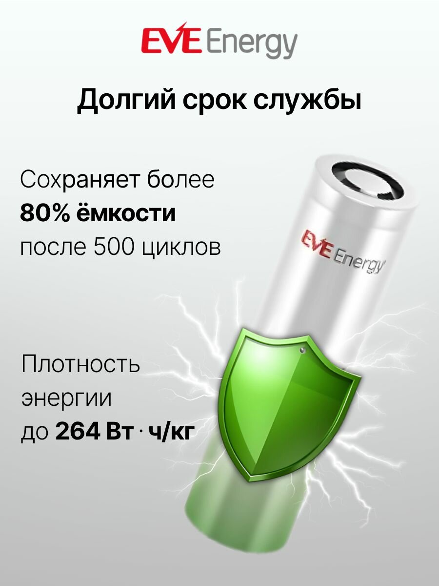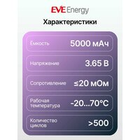 Купить Аккумулятор 21700 5000 мАч INR21700-50E EVE Energy 3.6 В, Li-Ion среднетоковый с плоским электродом, 8 штук с доставкой по всей России.