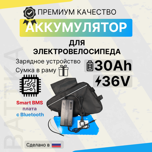 Купить Аккумулятор 36 В, 30 Ач, для электровелосипедов с Smart BMS «Battka», смарт бмс , li-ion, 30000 mAh, литиевая батарея с доставкой по всей России.