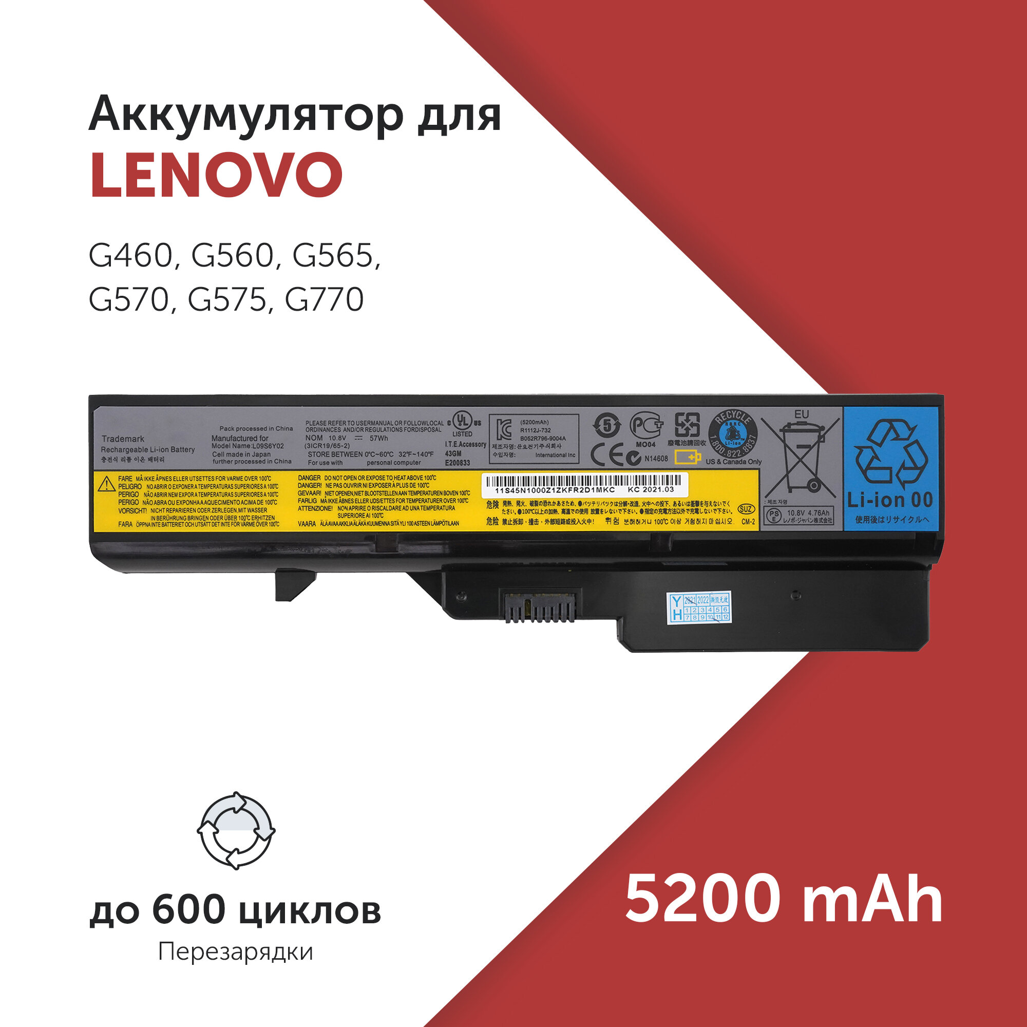 Аккумулятор 57Y6454 для ноутбука Lenovo IdeaPad G460 / G570 / G770 / Z460 (L08S6Y21, L09S6Y02, L10M6F21) 5200 мА·ч: сравнение цен, характеристики, фото, актуальное наличие и цены.