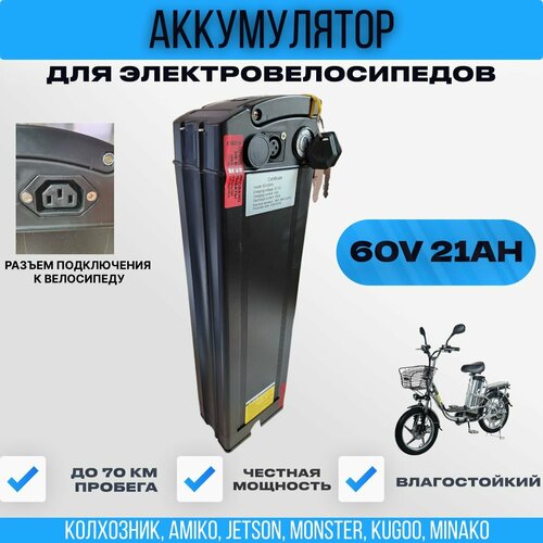 Купить Аккумулятор 60V 21Ah, черный, для электровелосипеда Колхозник, Минако, Монстр, Amiko, Jetson, разъем «мама» с доставкой по всей России. Аккумулятор 60V 21Ah, черный, для электровелосипеда Колхозник, Минако, Монстр, Amiko, Jetson, разъем «мама»: сравнение цен, характеристики, фото, актуальное наличие и цены.