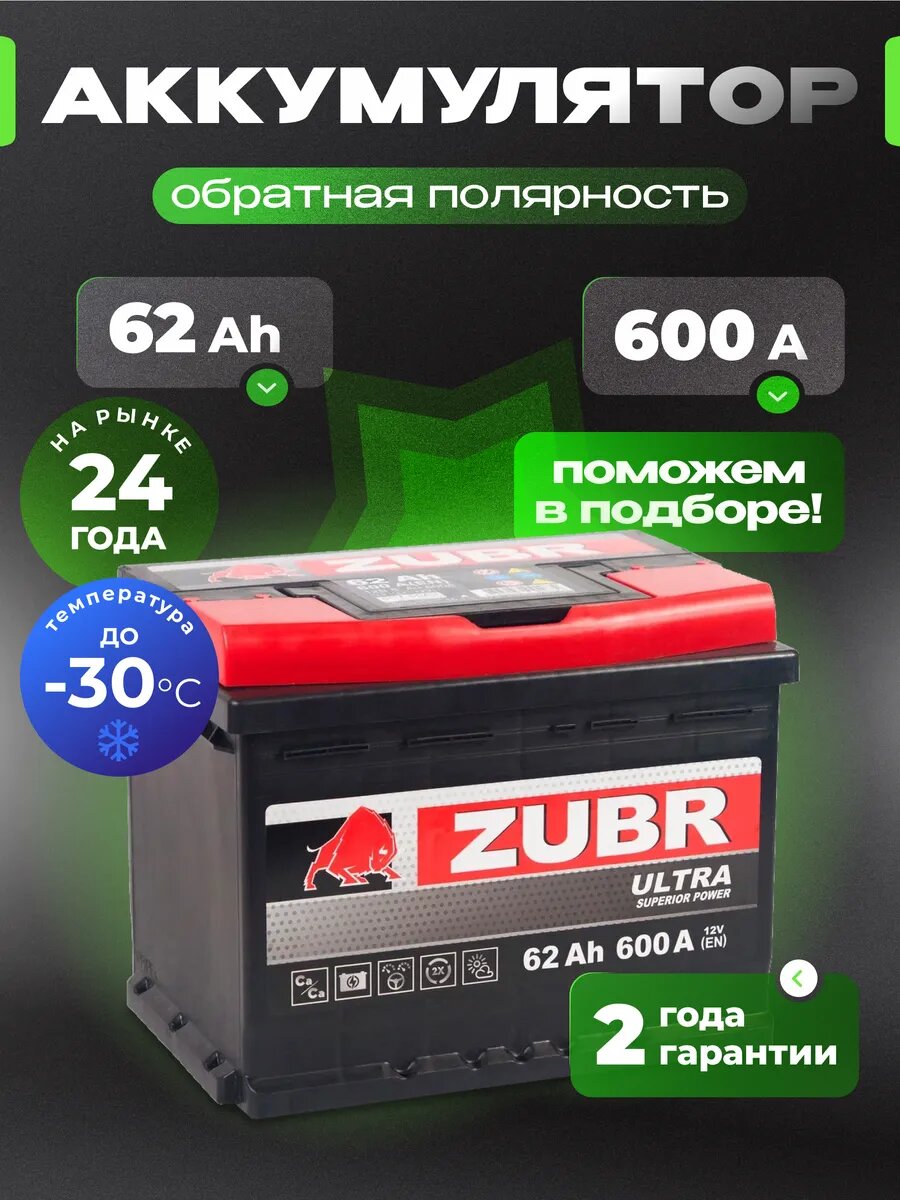 Купить Аккумулятор автомобильный 62 Ач обратная полярность 600 А с доставкой по всей России.
