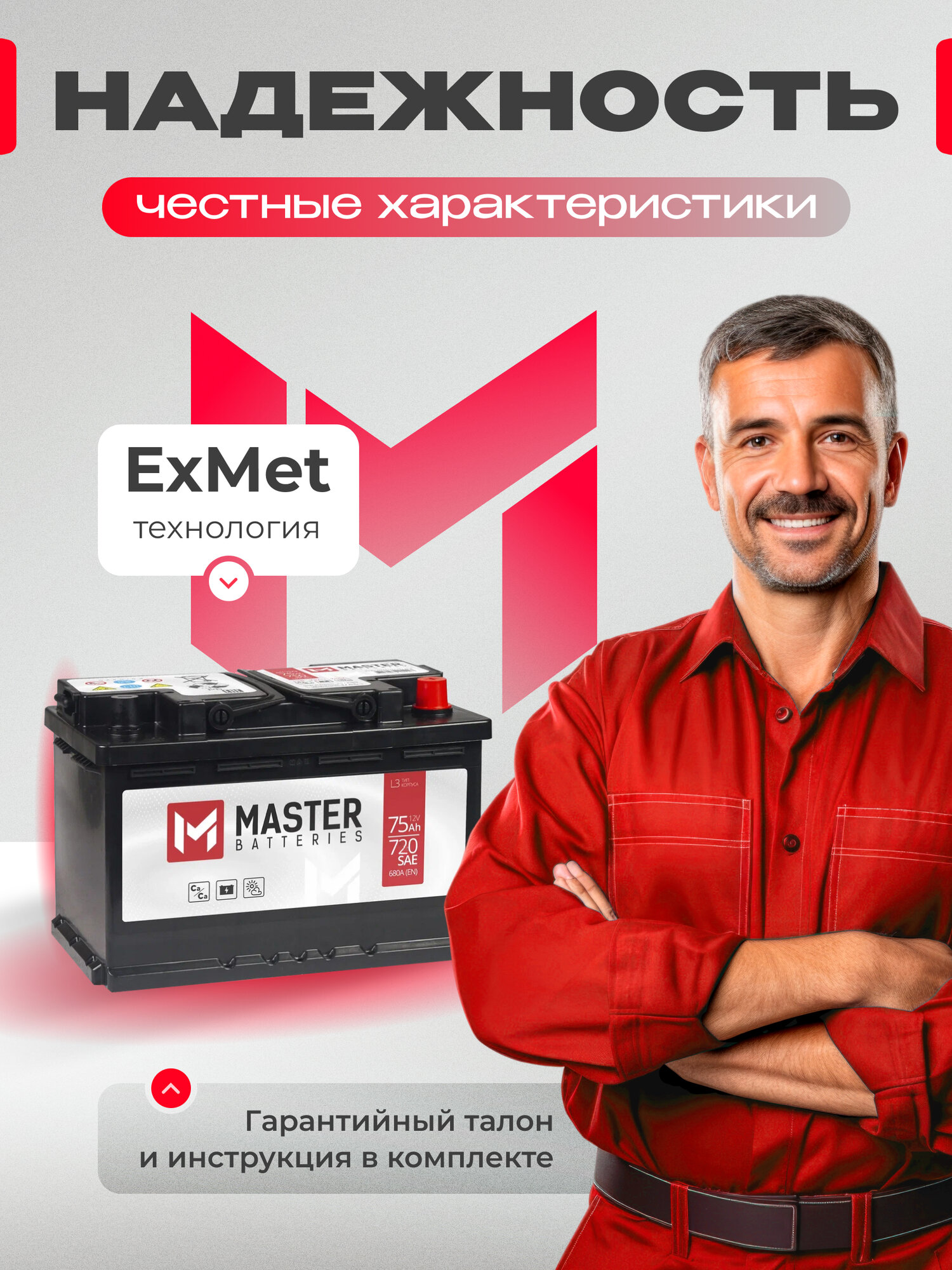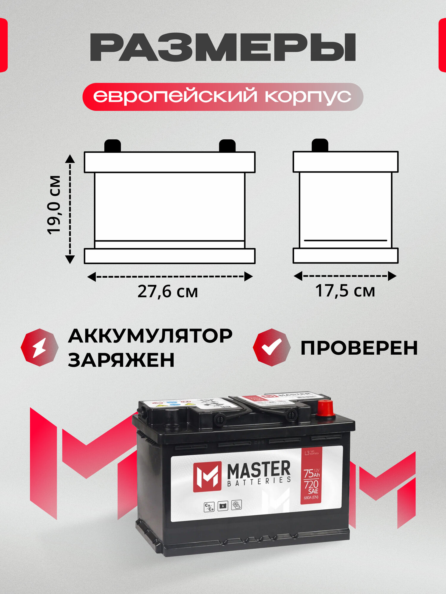 | Срок службы | 5 лет, Для увеличения срока службы аккумулятора, рекомендуем пользоваться автоматическим зарядным устройством один раз в год перед наступлением зимы для полного заряда аккумулятора и увеличении плотности электролита. |