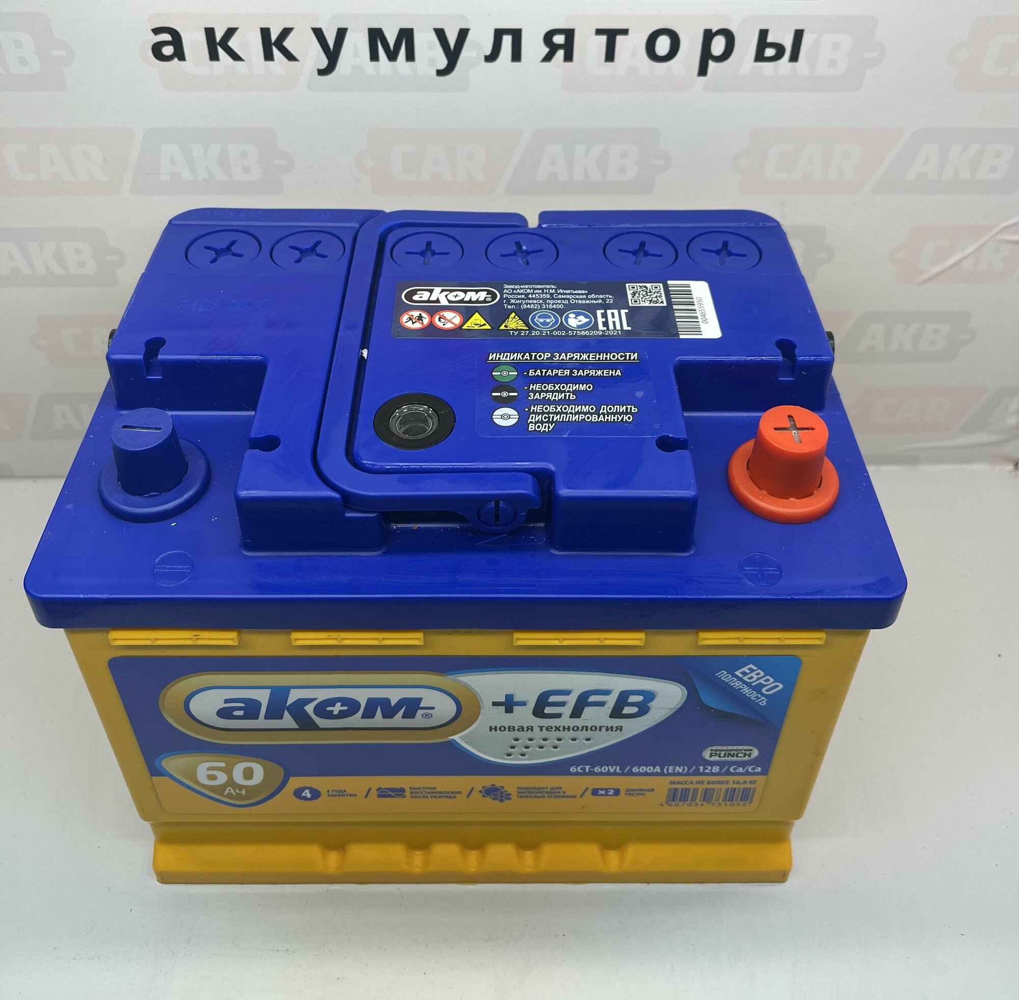 Купить Аккумулятор автомобильный АКОМ 6СТ-60EFB, 60 Ач, пуск. ток 600 А, обратная полярность, 242х175х190 с доставкой по всей России. Аккумулятор автомобильный АКОМ 6СТ-60EFB, 60 Ач, пуск. ток 600 А, обратная полярность, 242х175х190: сравнение цен, характеристики, фото, актуальное наличие и цены.