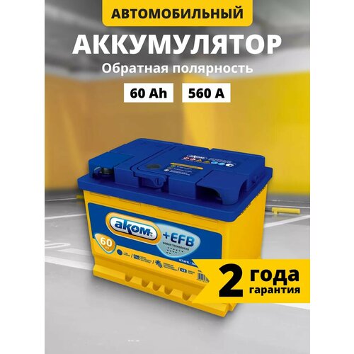 Купить Аккумулятор автомобильный АКОМ +EFB 60 Ач 560 A обратная полярность 242x175x190 мм с доставкой по всей России. Аккумулятор автомобильный АКОМ +EFB 60 Ач 560 A обратная полярность 242x175x190 мм: сравнение цен, характеристики, фото, актуальное наличие и цены.