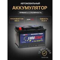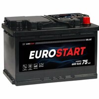 Аккумулятор EUROSTART Blue 75Ah L+ выполнен в классическом черном цвете, что придает ему стильный и современный вид.
