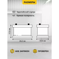 | Срок службы | 5 лет, Для увеличения срока службы аккумулятора, рекомендуем пользоваться автоматическим зарядным устройством один раз в год перед наступлением зимы для полного заряда аккумулятора и увеличении плотности электролита. |