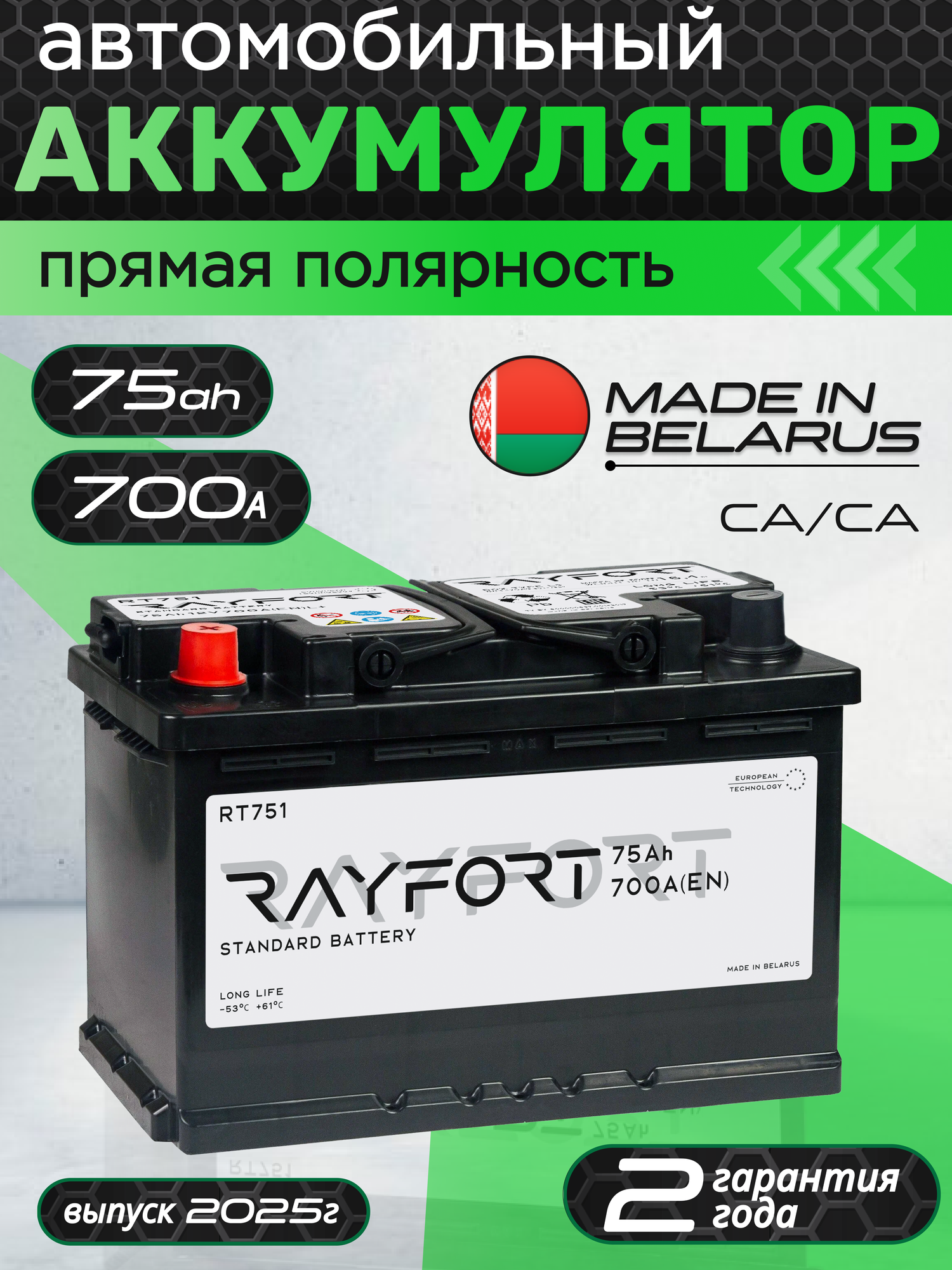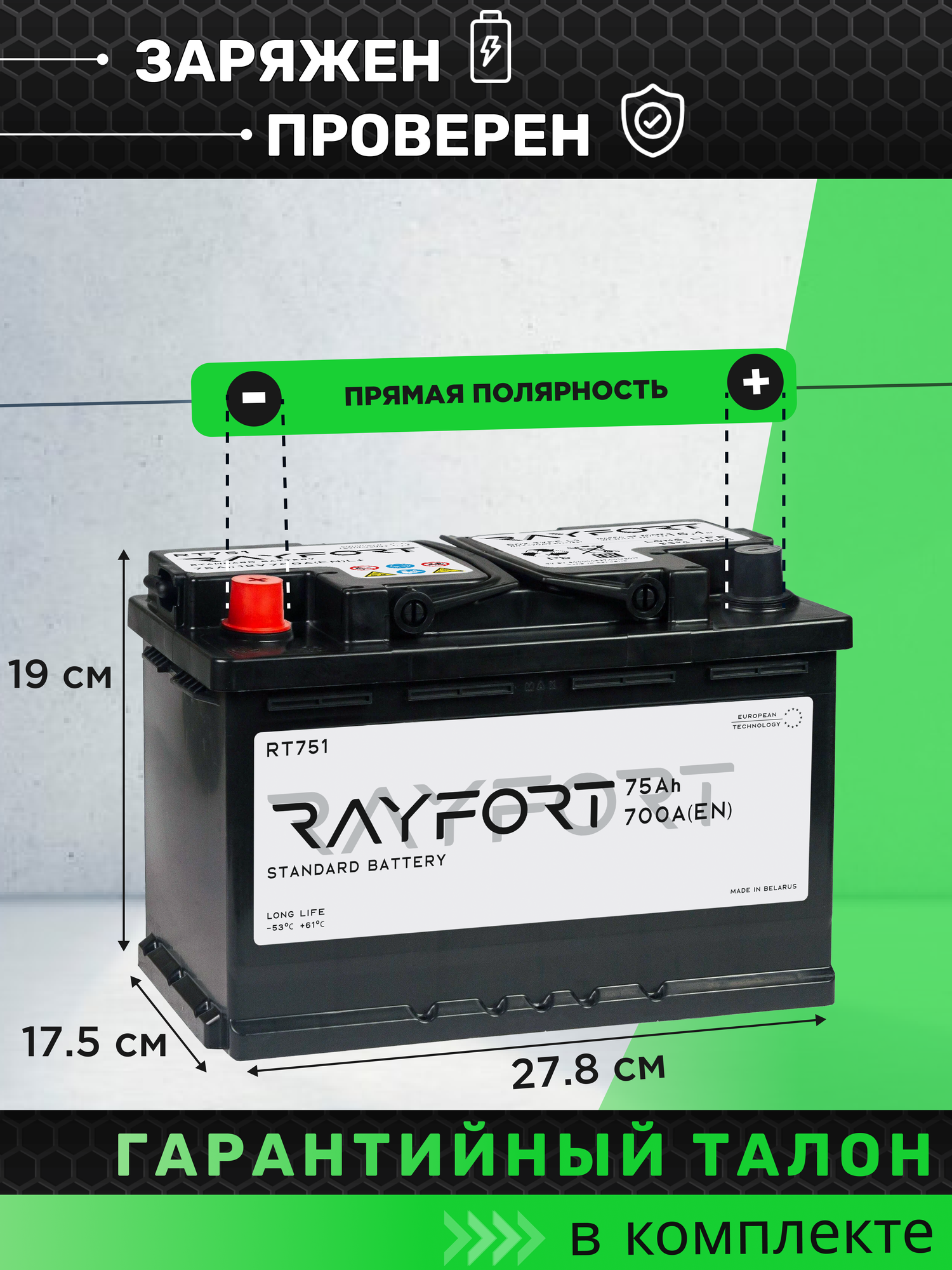 Аккумулятор автомобильный RAYFORT Standart RT751 75Ah 700A прямая полярность 278x175x190: сравнение цен, характеристики, фото, актуальное наличие и цены.