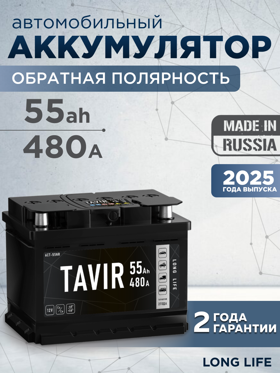 Купить Аккумулятор автомобильный TAVIR 55Ah 480А обратная полярность (242х175х190) с доставкой по всей России.
