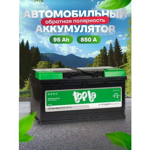 Аккумуляторы на автомобиль TOPLA, производимые в Словении, приобрели заслуженную популярность среди автолюбителей на рынке РФ и СНГ. Успешному продвижению батарей аккумуляторных данной серии способствует их высокое качество и привлекательная цена, надежность, долговечность, а также большой ассортимент спецификаций, что позволяет подобрать автомобильный аккумулятор 12v практически для любого легкового автомобиля. Аккумуляторы автомобильные 95 обратная полярность серии TOPLA AGM Stop & Go имеют ряд неоспоримых преимуществ: премиальное качество, увеличенная производительность, усовершенствованная технология, надежность, долгий срок службы, высокие стартовые токи, не требуют обслуживания.Увеличенное количество пластин авто аккумулятора позволяет уверенно запускать двигатель в любых погодных условиях, даже при экстремально низких температурах. Компрессия пластин кратно увеличена, что предотвращает быструю сульфатацию и выпадение активной массы. Акб автомобильный агм спроектирован для авто с системой Start-Stop, гарантированно выдерживает более 220 циклов заряд-разряд и подходит для работы на автомобилях последнего поколения с системой рекуперативного торможения и старт-стоп. Аккумулятор авто 12 вольт быстрее заряжается и не боится глубоких разрядов, восстанавливая первоначальную емкость почти до 100%. Корпус аккумулятора на машину изготавливается из ударопрочного пластика, стойкого к перепадам температур, воздействию электролита, масла и топлива. В аккумуляторе на авто 12в AGM используется премиального качества очищенный свинец, что гарантирует лучшую производительность по сравнению с обычной акб. Аккумулятор для автомобиля 90 полностью необслуживаемый, корпус герметичен, проверять электролит или доливать дистиллированную воду не нужно в течение всего срока эксплуатации.