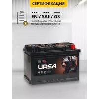 Автомобильный аккумулятор 75 Ач обратная полярность R+ URSA Extra power обеспечивает надежный пуск в любых условиях. Аккумулятор 12 В авто гарантирует высокое качество и долговечность, подтвержденные гарантийным сроком в 2 года. Аккумулятор 70 Ah обеспечивает мощный запуск двигателя, а технология Ca/Ca гарантирует стабильность и долгий срок службы. Утолщенная конструкция пластин и специальный состав активной массы обеспечивают продолжительную эксплуатацию батареи с высокими показателями пускового тока. В производстве используется технология «Expanded Metal» (ExMet), которая обеспечивает аккумулятору повышенный запас рабочего ресурса даже в условиях интенсивной вибрации. Аккумулятор на автомобиль URSA от завода-производителя обеспечит ваше транспортное средство электроэнергией для запуска двигателя. Долговечность, функциональность и высокая энергоемкость автомобильного аккумулятора 12v гарантируют долгую бесперебойную работу любого легкового автомобиля. Аккумуляторы автомобильные 80 обратная полярность имеют ряд неоспоримых преимуществ: технологичность, надежность, увеличенный ресурс, легкость в обслуживании. URSA – энергия зверя. Перевод названия с латыни означает медведь. Простая конструкция АКБ обеспечивает уверенную эксплуатацию батареи независимо от погодных и температурных условий, гарантирует выдачу превосходной энергии. Выверенные в процессе времени технические решения по виброустойчивости, достижение малого внутреннего сопротивления, использование высококачественного электролита в аккумуляторе на авто 12в кальциевого, позволяет заявить его отменные характеристики, которые отлично подойдут в использовании легкового и грузового транспорта. Аккумуляторы этой серии сочетают в себе стабильность в работе, хорошую производительность, высокий уровень безопасности благодаря специальной системе защиты от искр и течи электролита.