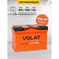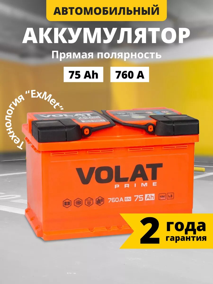 Линейка аккумуляторных батарей VOLAT рекомендована для легковых автомобилей большинства автопроизводителей. Серия аккумуляторов на автомобиль удачно сочетает в себе все необходимые эксплуатационные характеристики, в том числе хороший стартовый ток и повышенную виброустойчивость. При производстве аккумулятора машины использованы современные технологии и качественные комплектующие. Батареи аккумуляторные Волат имеет отличную пусковую мощность и производительность. При их производстве используется технология Expanded Metal (ExMet), обеспечивающая повышенный запас рабочего ресурса при интенсивной эксплуатации. Все эти характеристики дают железобетонное основание для философии и главного слогана этого бренда: VOLAT – надежен как танк! Аккумуляторы автомобильные 75 прямая полярность серии Volat Prime имеют ряд неоспоримых преимуществ: технологичность, надежность, увеличенный ресурс, производительность, функциональность, высокое качество. Увеличенное количество пластин авто аккумулятора позволяет уверенно запускать двигатель в любых погодных условиях. В качестве сепараторов для разделения положительных и отрицательных пластин использован специальный улучшенный материал, обладающий повышенной стойкостью к окислению и саморазрушению, что значительно увеличивает срок эксплуатации акб автомобильного 75. В аккумуляторе авто 12 вольт использована крышка Camina, имеющая технологические отверстия для обслуживания и удобные объемные ручки, что делает автобатарею невероятно простой в обслуживании. Корпус аккумулятора на машину изготавливается из ударопрочного пластика, стойкого к перепадам температур, воздействию электролита, масла и топлива. Срок службы аккумулятора на авто 12в кальциевого зависит от множества факторов, среди которых его характеристики и особенности использования. Перед заменой аккумулятора для автомобиля 70, следует внимательно прочесть сервисную книжку, там указаны рабочие параметры.
