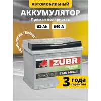 Аккумулятор автомобильный ZUBR Premium 63Ah 640 А прямая полярность