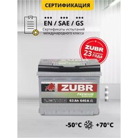 Аккумулятор автомобильный ZUBR Premium 63Ah 640 А прямая полярность: сравнение цен, характеристики, фото, актуальное наличие и цены.