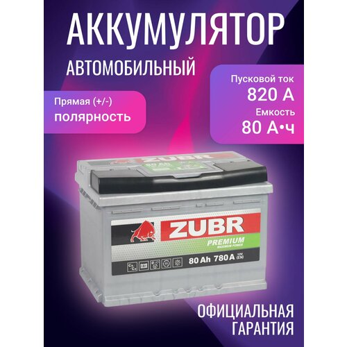Аккумулятор автомобильный Zubr Premium 80 А/ч 820 А прям. пол. Росс. авто (278х175х190) ZP801: сравнение цен, характеристики, фото, актуальное наличие и цены.