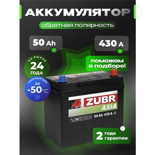 Купить Аккумулятор автомобильный ZUBR Premium Asia (без борта) 50 Ah 430 A обратная полярность 237x127x225 с доставкой по всей России.