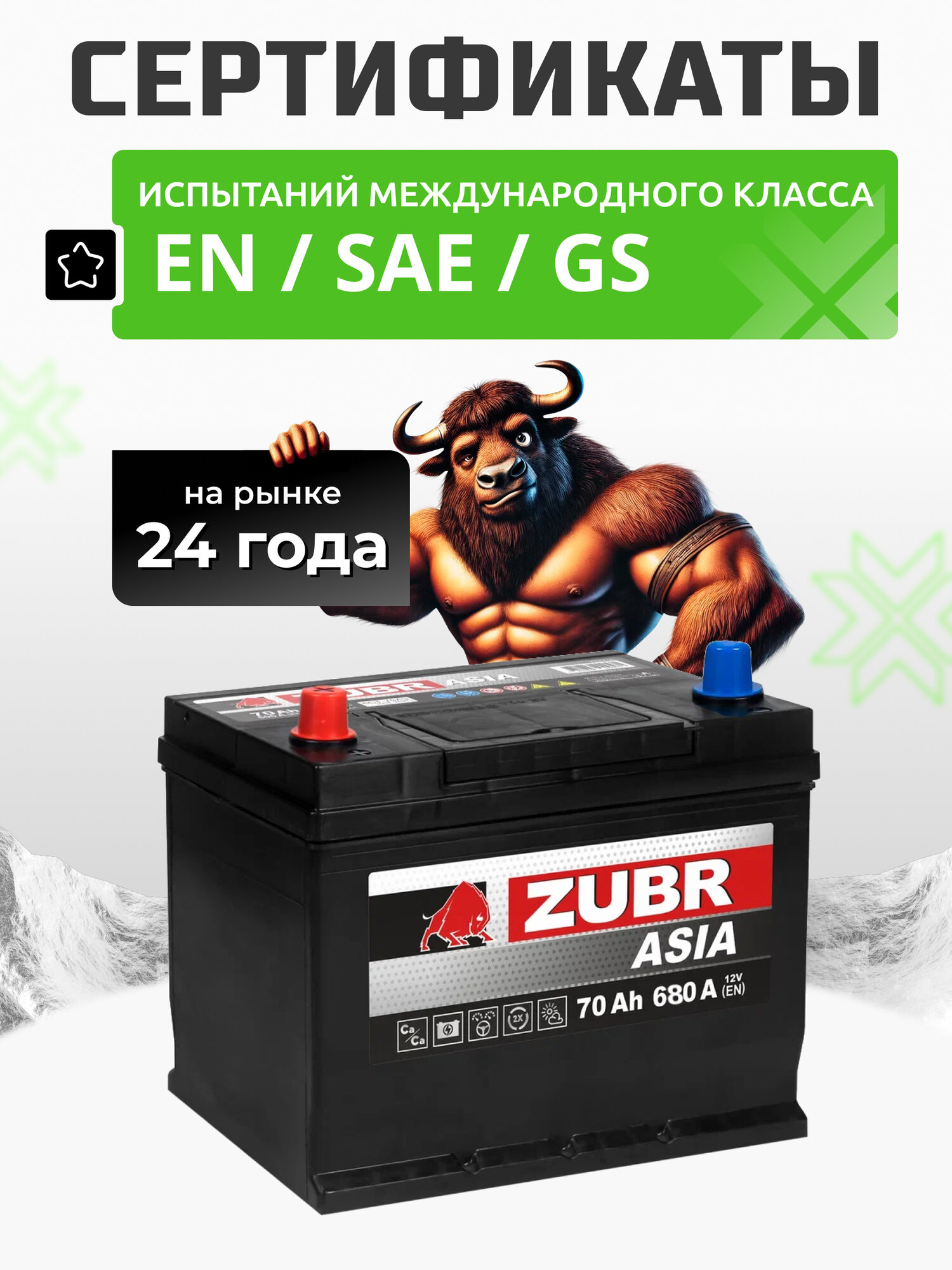 Аккумулятор автомобильный ZUBR Ultra Asia (нижний борт) 70 Ah 680 A прямая полярность 261x175x225: сравнение цен, характеристики, фото, актуальное наличие и цены.