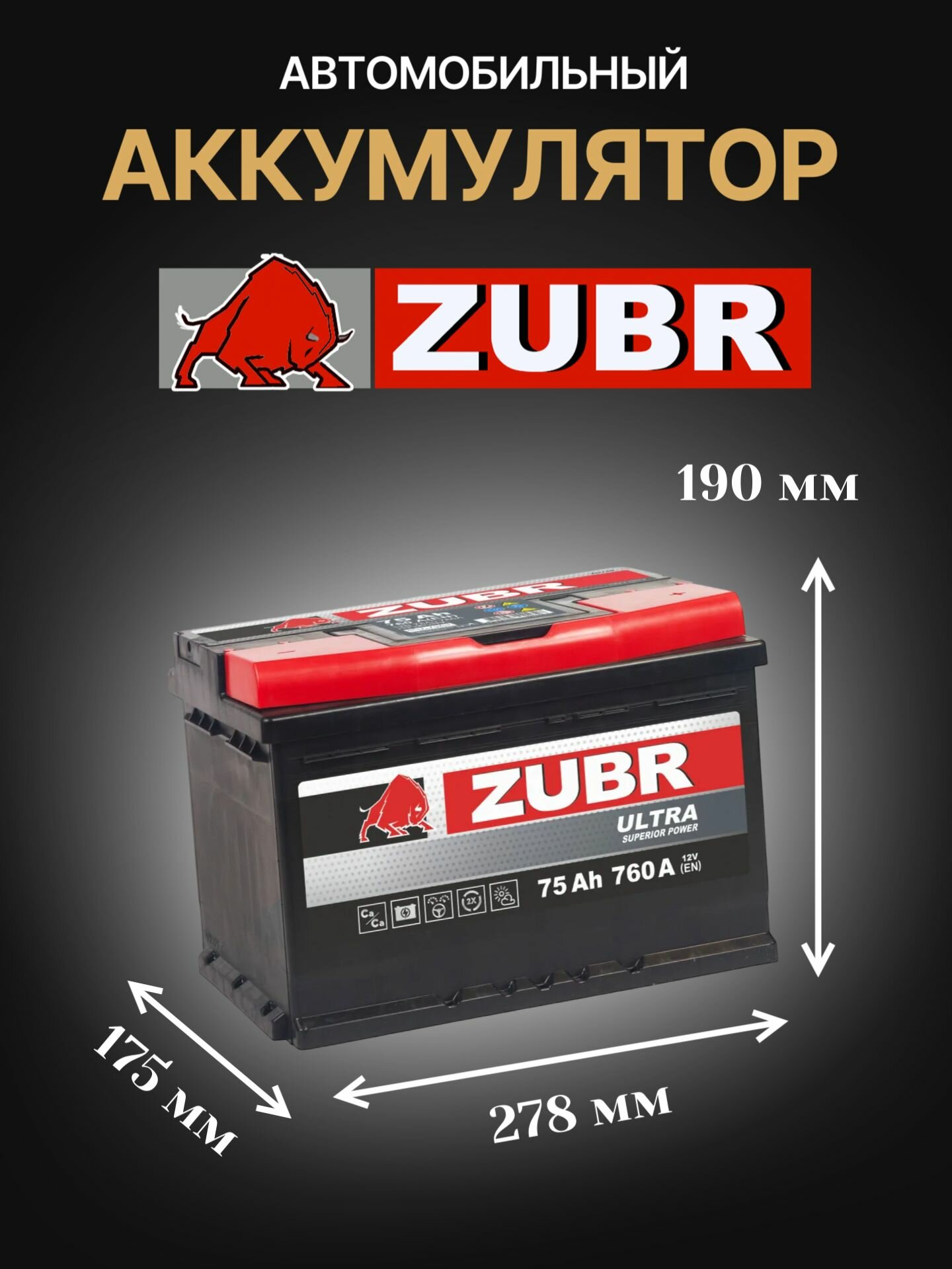Купить Аккумулятор ZUBR Ultra 75Ah R+ ZU750 с доставкой по всей России. Аккумулятор ZUBR Ultra 75Ah R+ ZU750: сравнение цен, характеристики, фото, актуальное наличие и цены.