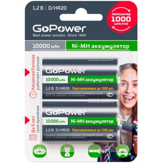 Купить Аккумулятор бытовой Gopower HR20 D BL2 NI-MH 10000mAh с доставкой по всей России. Аккумулятор бытовой Gopower HR20 D BL2 NI-MH 10000mAh: сравнение цен, характеристики, фото, актуальное наличие и цены.