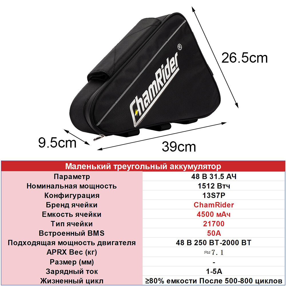 Аккумулятор ChamRider Triangle 48V31.5AH для электровелосипеда BMS 40A Доставка со склада в Москве: сравнение цен, характеристики, фото, актуальное наличие и цены.