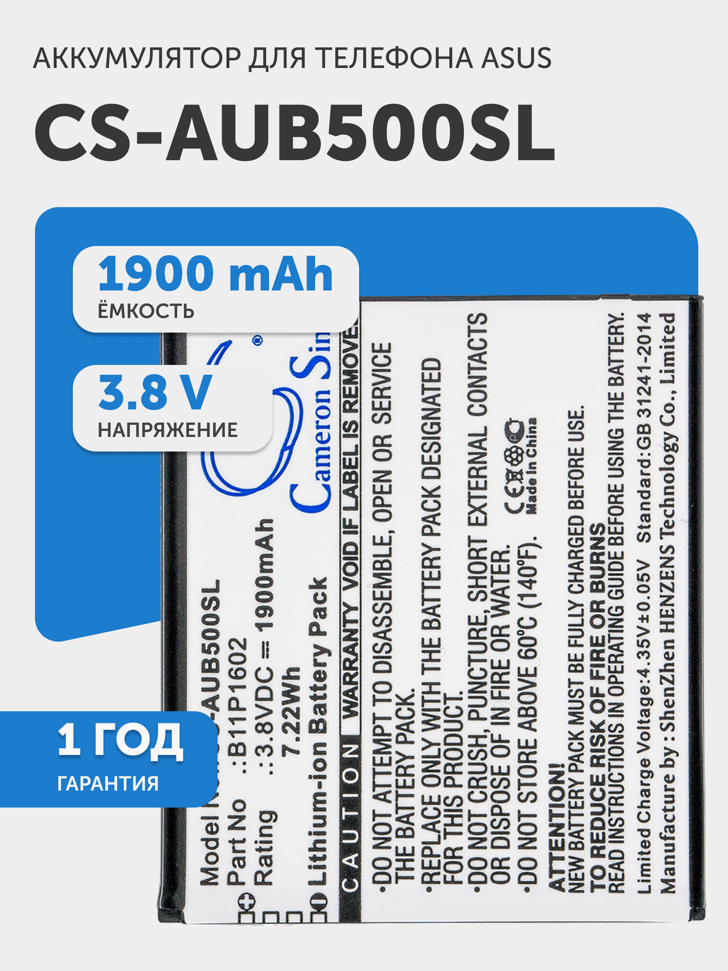 Аккумулятор CS-AUB500SL B11P1602 для Asus ZenFone Go 5.0 3.8V / 1900mAh / 7.22Wh: сравнение цен, характеристики, фото, актуальное наличие и цены.