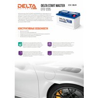 Аккумуляторы DELTA START MASTER EFB изготавливаются по технологии Enhanced Flooded Battery(усовершенствованная батарея с жидким электролитом) и предлагает удвоенную устойчивость к циклическим нагрузкам по сравнению со стандартными стартерными АКБ. Аккумулятор адаптирован для применения в автомобилях с повышенным энергопотреблением, и оснащенных системой START-STOP. Невероятно выносливый, абсолютно виброустойчивый, заряд от генератора принимает в два раза быстрее обычного аккумулятора, имеет в три раза больший жизненный цикл по сравнению с обычным аккумулятором. Не боится глубоких разрядов, герметичный и абсолютно безопасный, может устанавливаться в салоне автомобиля и в багажнике. Применяется в современных европейских и азиатских автомобилях класса люкс с системой Старт-Стоп, в автомобилях с высоким энергопотреблением, в коммерческом транспорте. Совместимые модели: BMW: 61 21 7 604 799, 61 21 7 604 800; 61 21 7 604 803; 61 21 9 352 069; 61 21 9 364 590. MERCEDES-BENZ: A 000 982 86 08; A 001 982 79 08; A 005 5 411 301. VAG: 000 915 105 CB; 6R 09 151 05 A. Применяемость: AUDI: A1, A3, A4, A6, Q2, TT. BENTLEY: CONTINENTAL; FLYING SPUR; MULSANNE. BMW: 1, 3, M1, X3, Z3 Roadster, Z4. JAGUAR XJ.KIA: CEE'D, CEE'D SW, PICANTO, PRO CEE´D. LAND ROVER.VARTA 560 901 068.