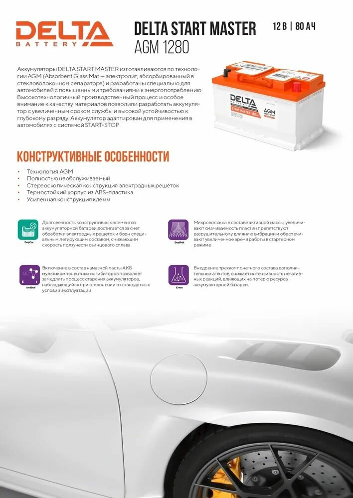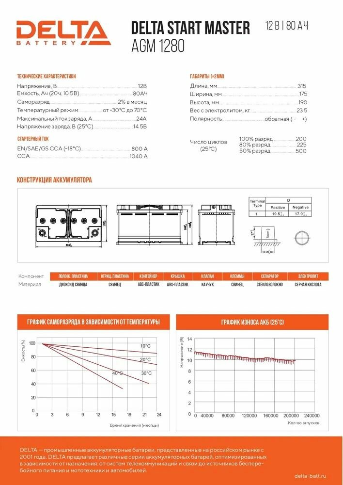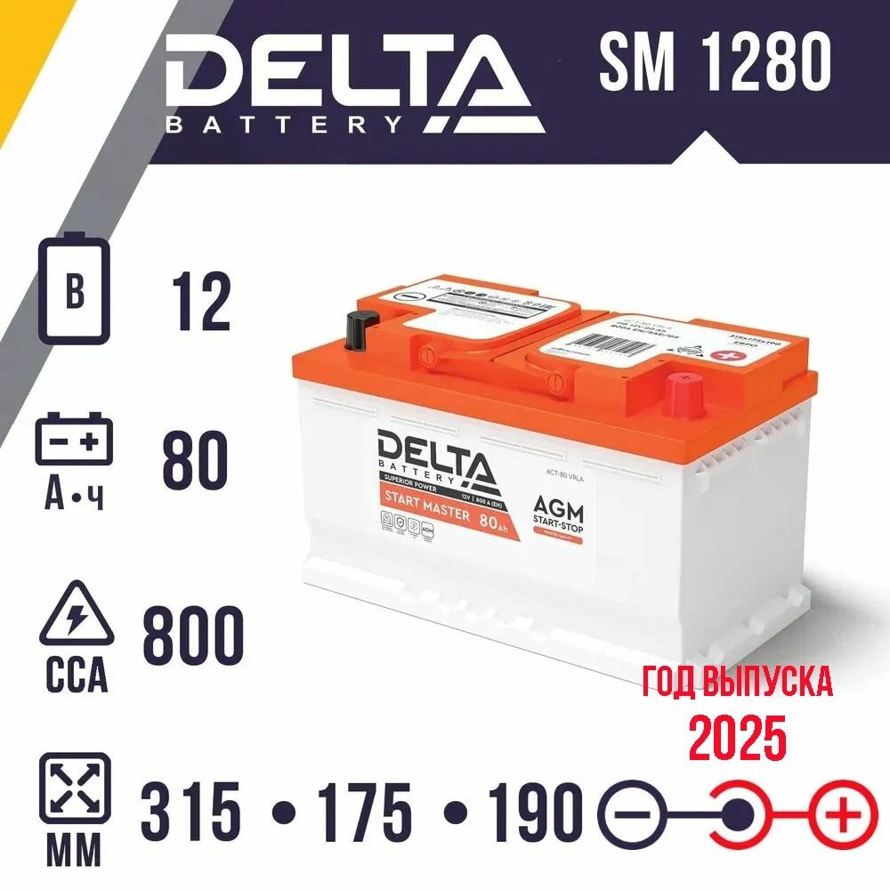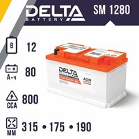 Аккумулятор DELTA START MASTER 1280 AGM (12В 80Ач 800A(EN) 315x175x190 обратной полярности (-/+) 12V 80Ah: сравнение цен, характеристики, фото, актуальное наличие и цены.
