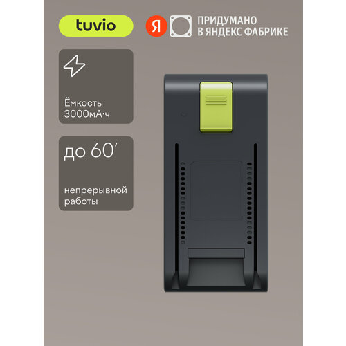Tuvio — это бренд удобной бытовой техники, придуманный в Яндекс Фабрике. Съёмный аккумулятор BATS12 подходит для беспроводного вертикального пылесоса TUVIO TVC09S. Аккумулятор ёмкостью 3000 мАч работает до 60 минут без дополнительной подзарядки. Достаточно, чтобы привести в порядок отдельную комнату или квартиру. Время работы может отличаться в зависимости от выбранного режима мощности. Чтобы продлить срок службы нового аккумулятора, можно несколько раз полностью разрядить и зарядить его. В Tuvio можно купить оригинальные сменные комплектующие.