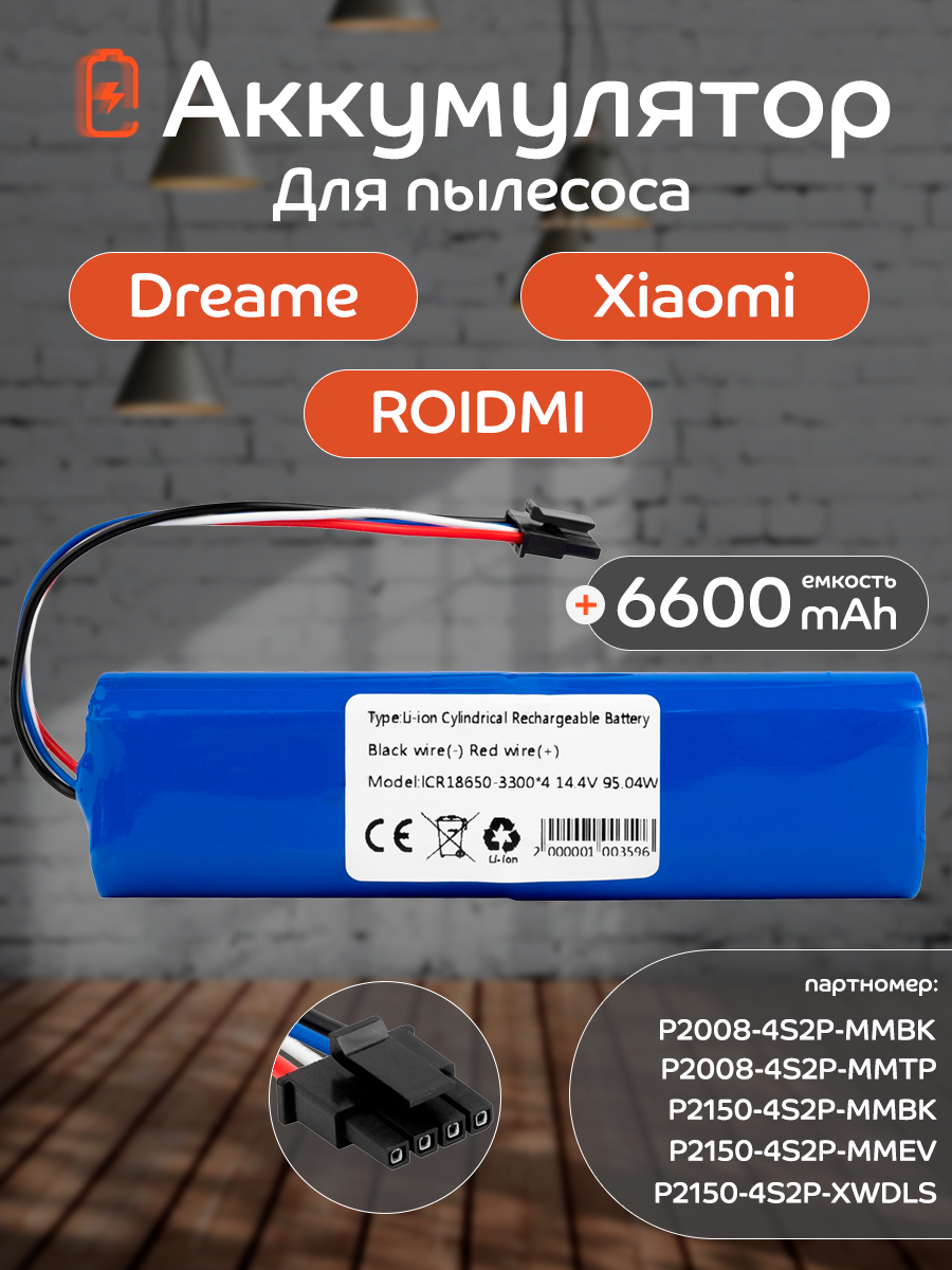 Аккумулятор для Dreame D9, F9, D9, D9 Pro, S10, L10 Pro, Xiaomi Mijia 1T, Mi Robot Vacuum-Mop 2 Pro Plus и др 6600mAh: сравнение цен, характеристики, фото, актуальное наличие и цены.