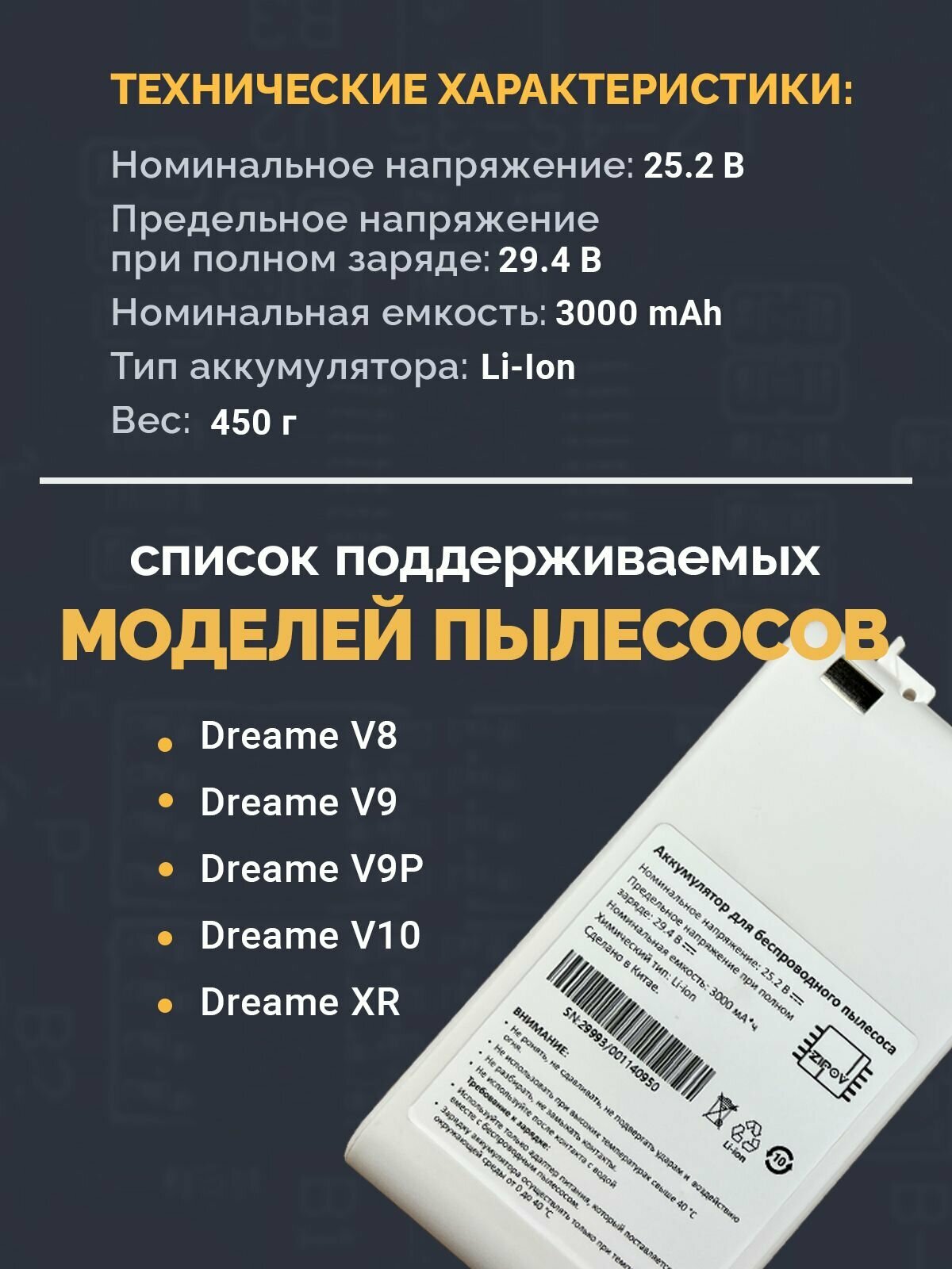 Купить Аккумулятор для Dreame V9 / Dreame V10 / Dreame XR 3000mAh 25.2V с доставкой по всей России. Аккумулятор для Dreame V9 / Dreame V10 / Dreame XR 3000mAh 25.2V: сравнение цен, характеристики, фото, актуальное наличие и цены.