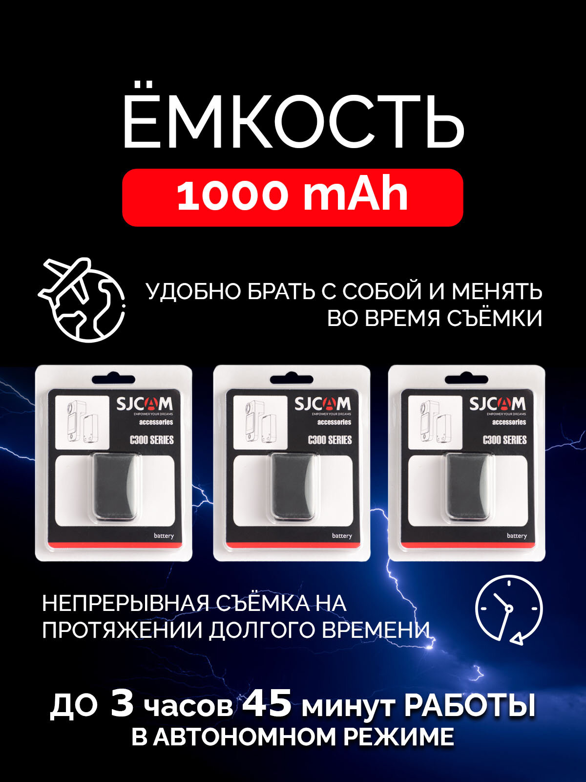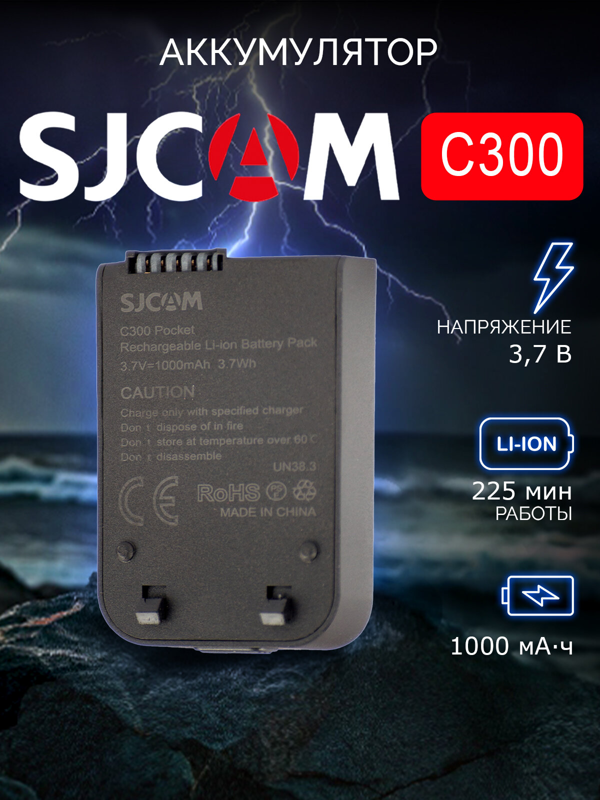 Оригинал Аккумулятор для экшн-камер SJCAM C300, аккумулятор 1000 mAh, цвет черный: сравнение цен, характеристики, фото, актуальное наличие и цены.
