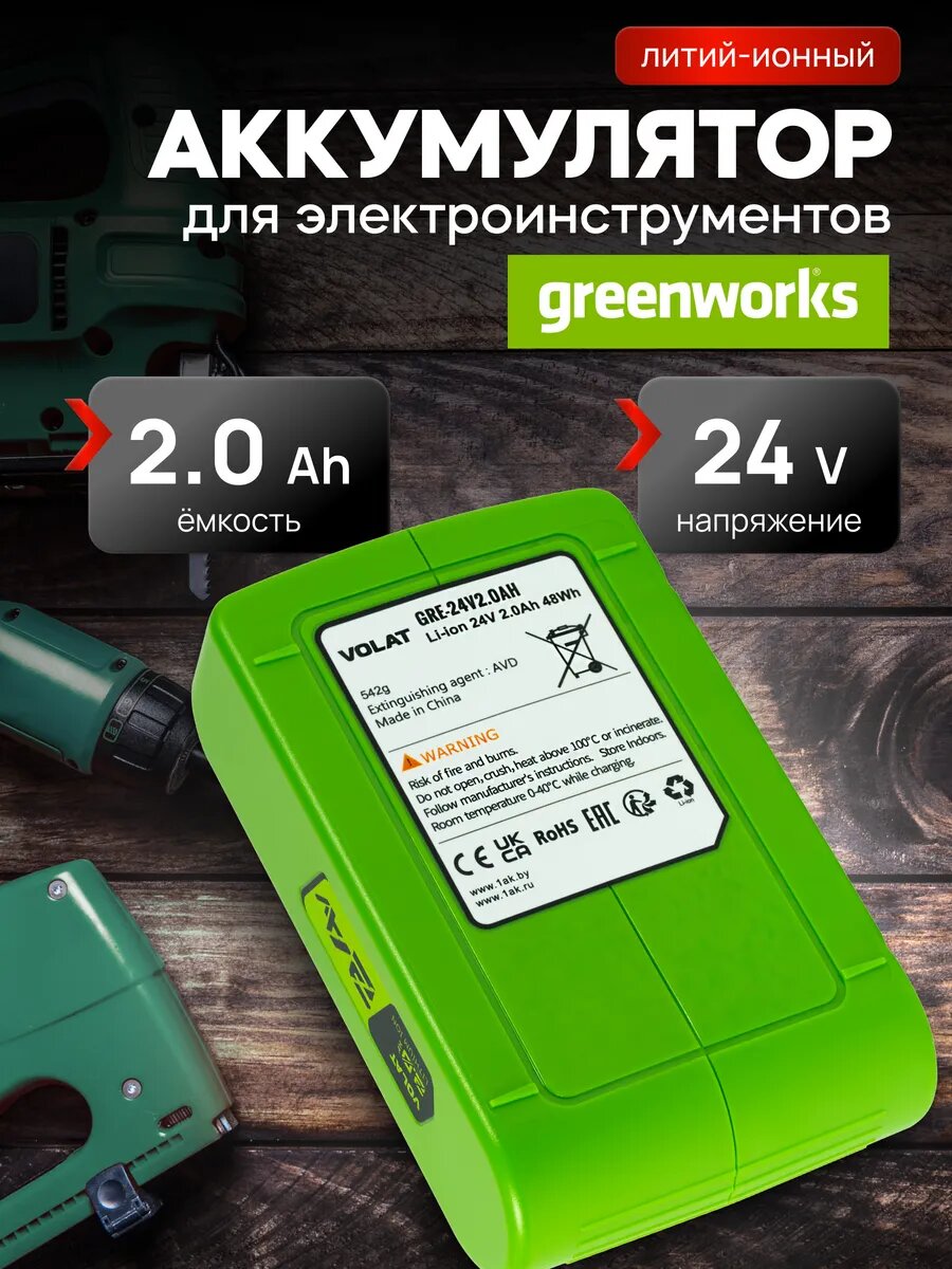 Купить Аккумулятор для электроинструмента Greenworks 24V 2AH Li-ion с доставкой по всей России. Аккумулятор для электроинструмента Greenworks 24V 2AH Li-ion: сравнение цен, характеристики, фото, актуальное наличие и цены.