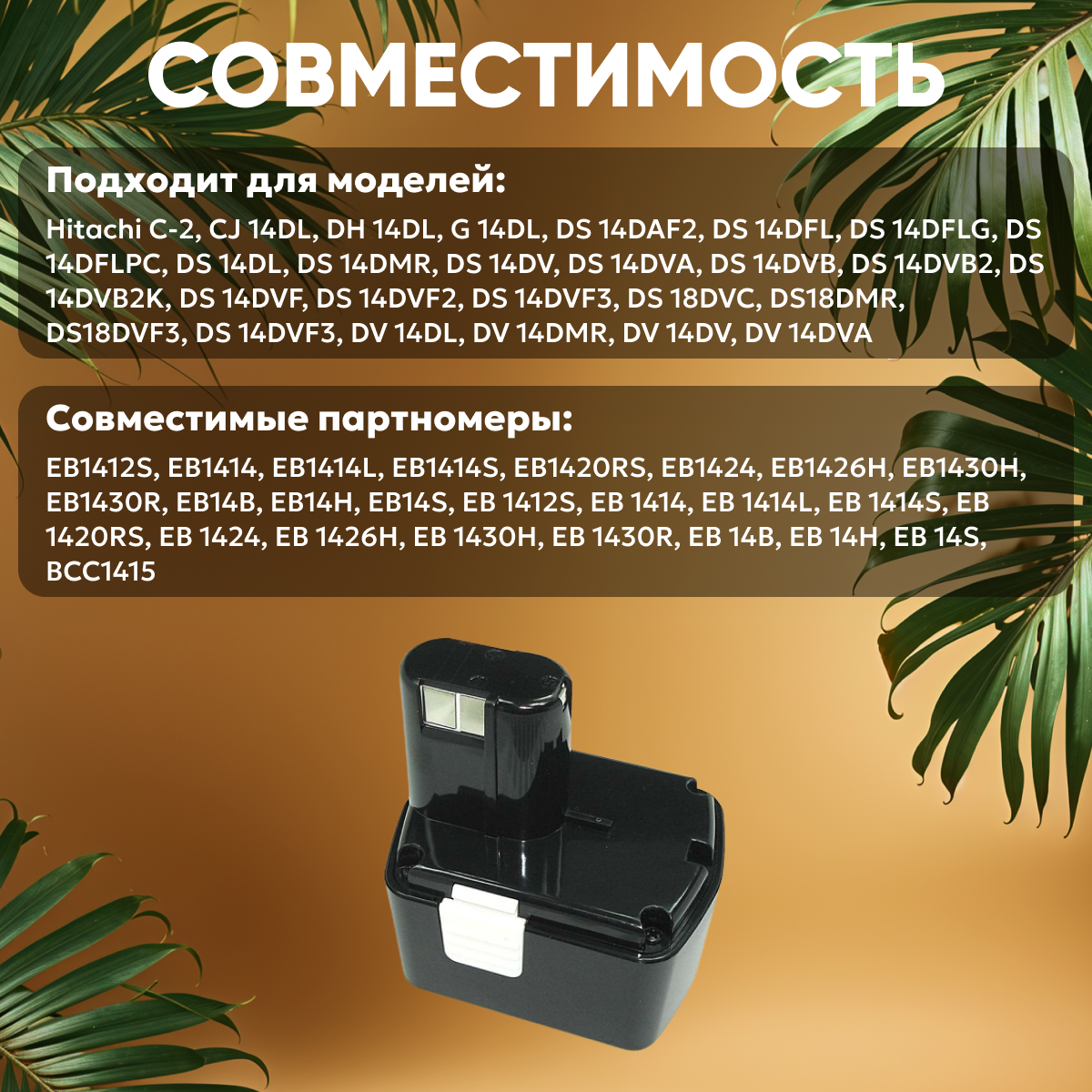 Аккумулятор для электроинструмента Hitachi (p/n: EB 1414L, EB 1420RS, EB 1426H, EB 1430H, EB 1430R), 2.1Ач, 14.4В, Ni-Mh: сравнение цен, характеристики, фото, актуальное наличие и цены.