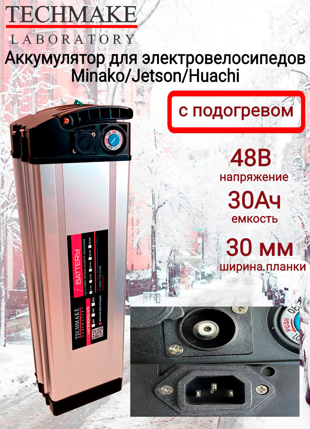 Аккумулятор для электровелосипедов 48V 30Ah (135х90х450) С подогревом!