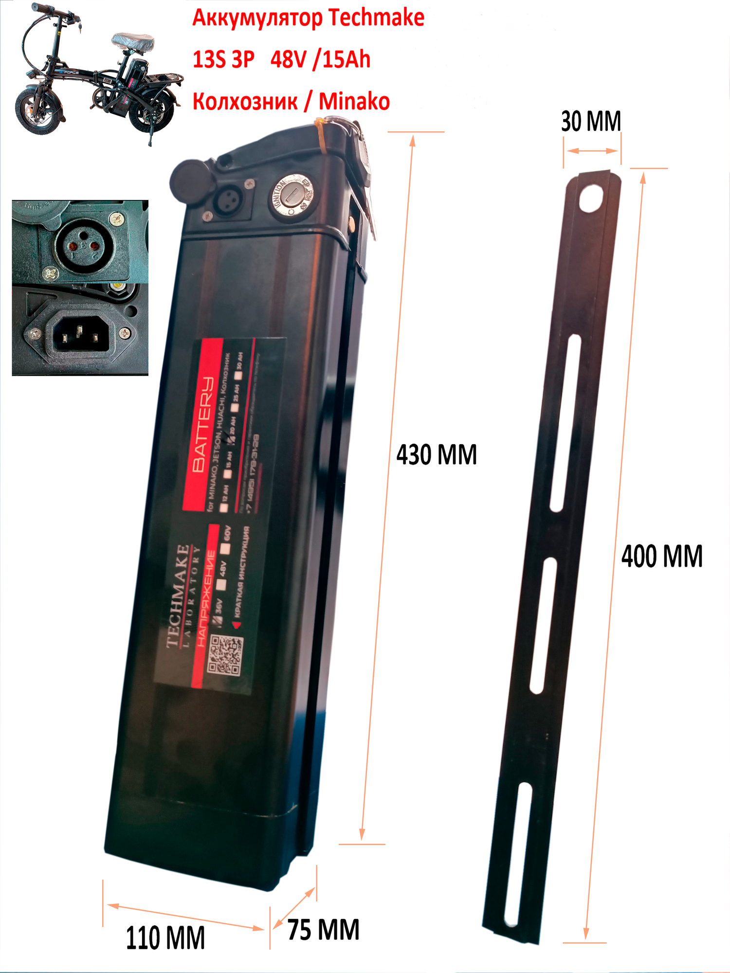 Аккумулятор для электровелосипедов типа Колхозник (Virus)/Minako/Jetson/Huachi 48V 15Ah в узком корпусе!(430*110*76мм): сравнение цен, характеристики, фото, актуальное наличие и цены.
