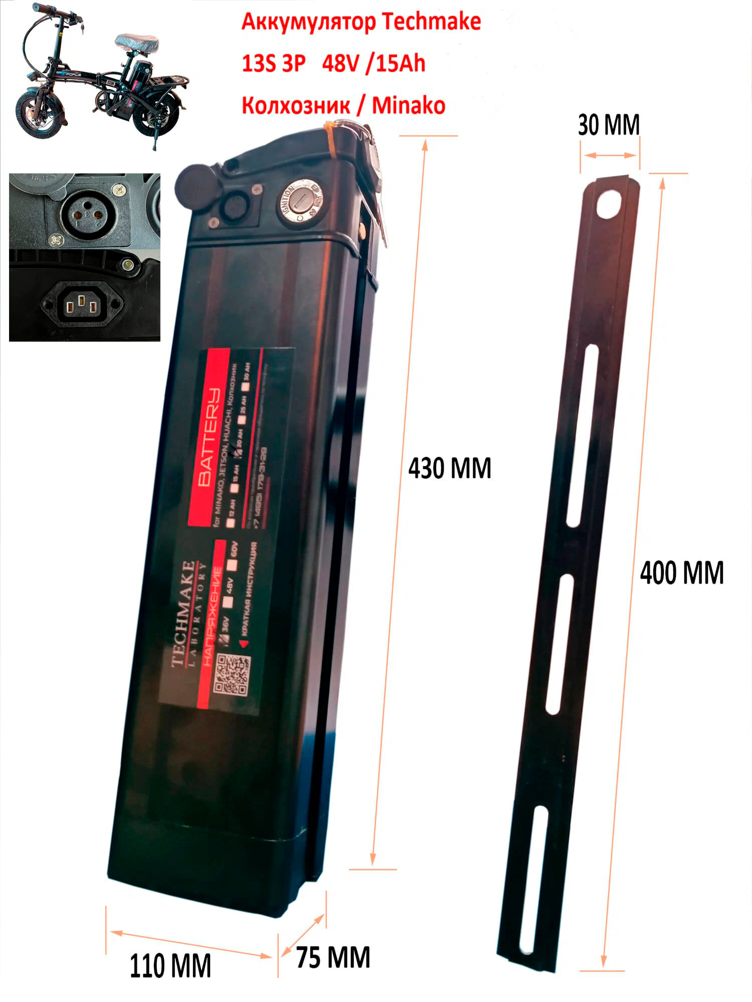 Аккумулятор для электровелосипедов типа Колхозник (Virus)/Minako/Jetson/Huachi 48V 15Ah в узком корпусе!(430*110*76мм): сравнение цен, характеристики, фото, актуальное наличие и цены.