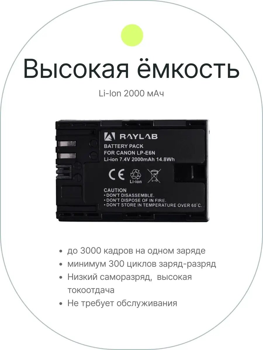 Аккумулятор Raylab RL-LPE6N 2000мАч (для EOS 6D 60D, 70D, 80D, 7D, 5D mark II, mark III): сравнение цен, характеристики, фото, актуальное наличие и цены.