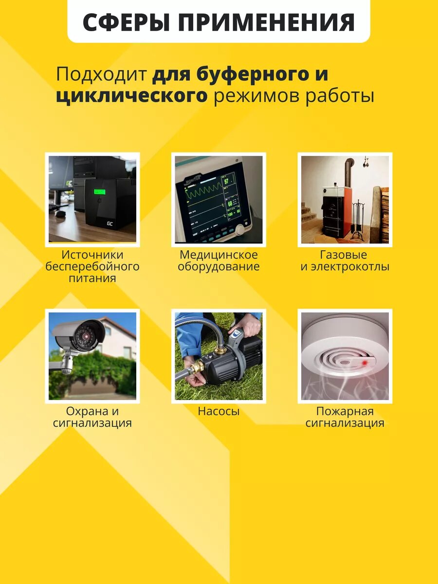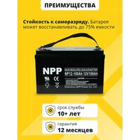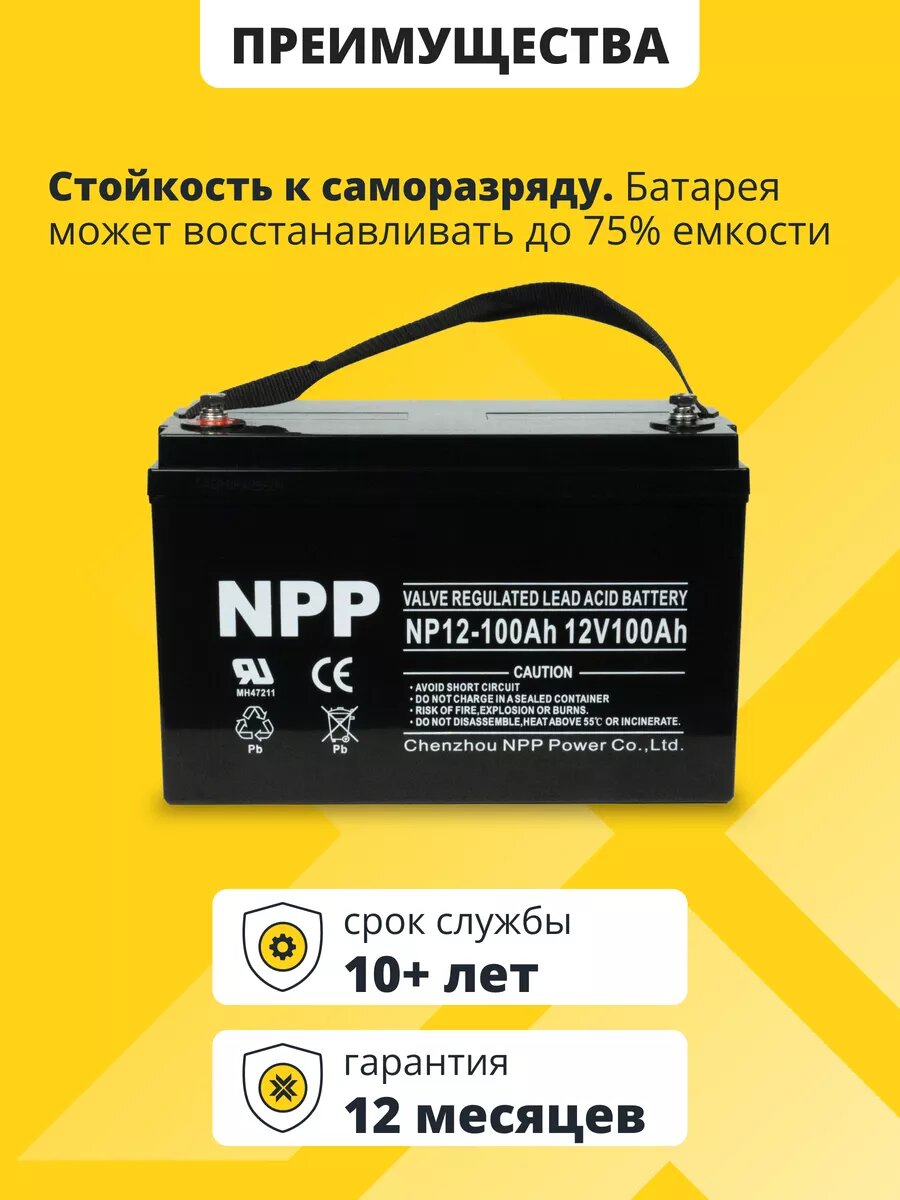 Аккумулятор для ибп NPP AGM 12v 100ah – устройство, предназначенное для обеспечения стабильного электропитания при отключении основного источника энергии. Бесперебойник для дома, компьютера играет важную роль в защите оборудования от потерь данных и повреждений, вызванных внезапными сбоями электроснабжения. Одним из лидеров на рынке стационарных аккумуляторов 12 вольт является серия NPP, гарантирующая надежность и эффективность в работе источников бесперебойного питания. В аккумуляторе AGM 12В электролит абсорбирован в стекловолоконном сепараторе, что обеспечивает герметичность, устойчивость к вибрациям и низкое электрическое сопротивление. Они отличаются высокой стойкостью к глубокому разряду, большим количеством циклов перезаряда, прочным корпусом. Аккумуляторы для детской машины, мотоцикла, электромобиля являются безопасными для человека и окружающей среды, поскольку не выделяют вредных паров и не подвержены вытеканию электролита. Еще одно преимущество аккумуляторов для машинки на радиоуправлении – их можно монтировать в произвольном положении под наклоном, даже в перевернутом состоянии. Аккумуляторы для бесперебойника не требуют обслуживания, рекомендованы для использования как в буферном, так и циклическом режимах. Акб для источников резервного питания являются универсальными: медицинское, торговое оборудование, пк, компьютеры, газовые и электро котлы отопления, аварийное освещение, системы видеонаблюдения, охранная пожарная сигнализация, извещатель, телекоммуникации, связь, промышленные установки, насосы, детские машинки, скутеры, квадроциклы, электромашины, игрушки для ребенка, инвалидные коляски, опрыскиватели садовые умница, осветительные и переносные приборы, солнечные панели и батареи, поломоечные и уборочные машины, клининг. Регулярно проверяйте состояние и уровень заряда акб для ибп. В нашем магазине можно приобрести подходящее зарядное устройство. Перед покупкой уточните рабочие параметры ранее установленной свинцово-кислотной батареи.