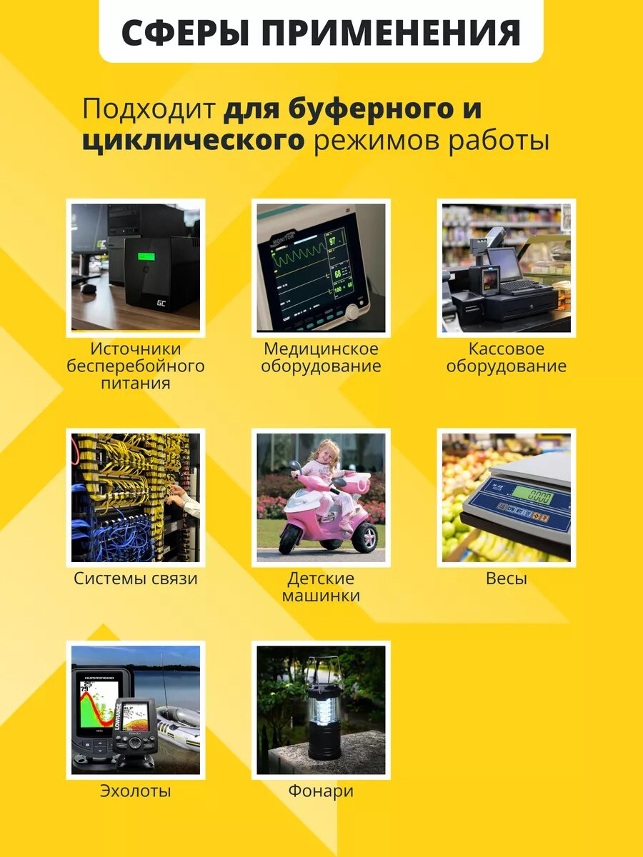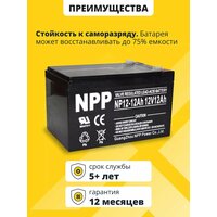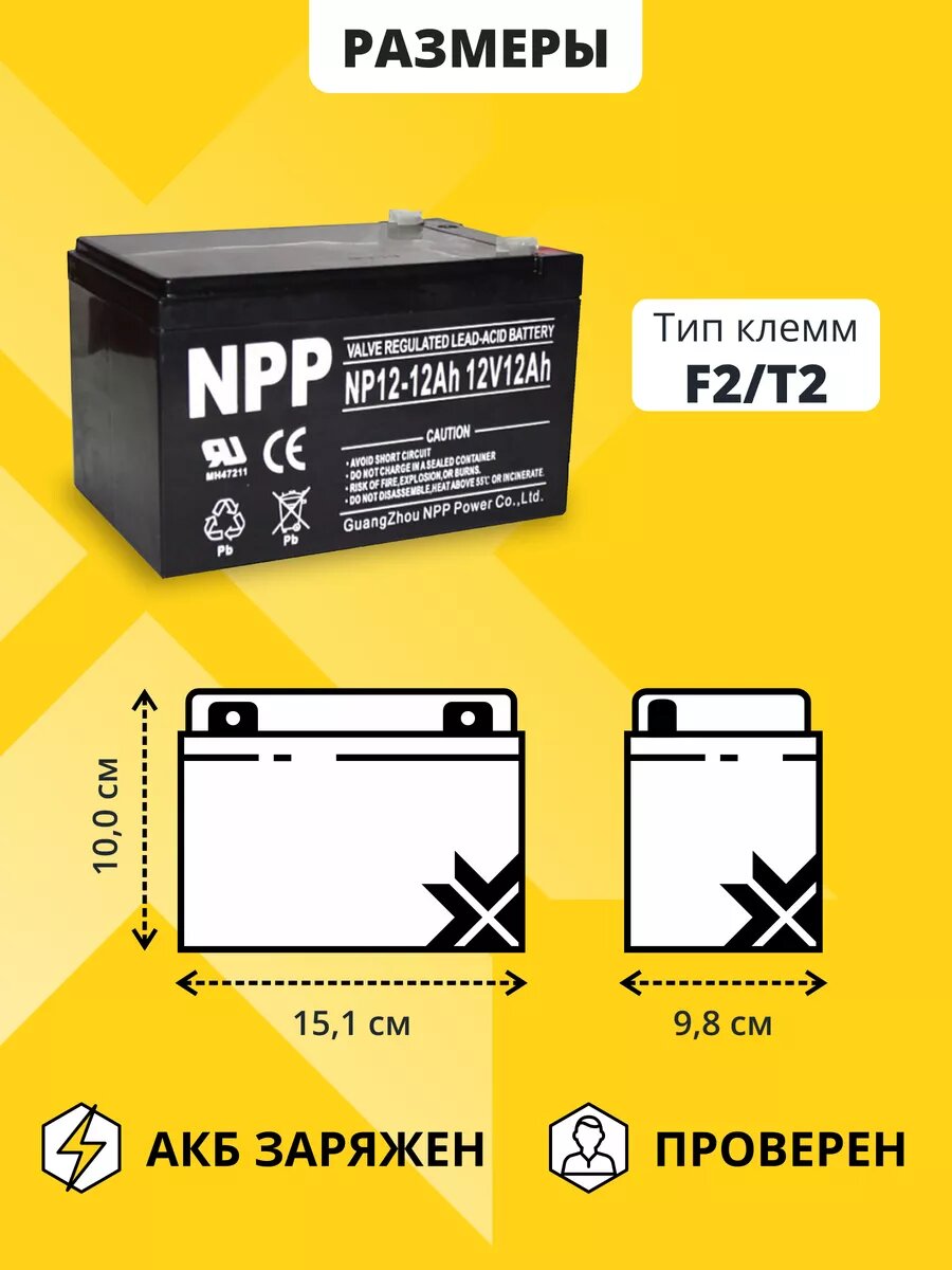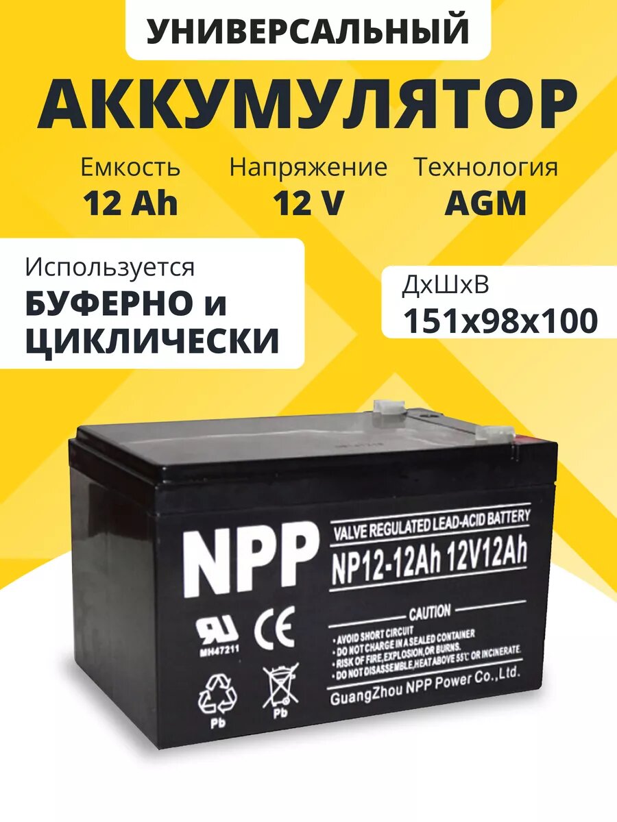 Аккумулятор для ибп NPP AGM 12v 12ah – устройство, предназначенное для обеспечения стабильного электропитания при отключении основного источника энергии. Бесперебойник для дома, компьютера играет важную роль в защите оборудования от потерь данных и повреждений, вызванных внезапными сбоями электроснабжения. Одним из лидеров на рынке стационарных аккумуляторов 12 вольт является серия NPP, гарантирующая надежность и эффективность в работе источников бесперебойного питания. В аккумуляторе AGM 12В электролит абсорбирован в стекловолоконном сепараторе, что обеспечивает герметичность, устойчивость к вибрациям и низкое электрическое сопротивление. Они отличаются высокой стойкостью к глубокому разряду, большим количеством циклов перезаряда, прочным корпусом. Аккумуляторы для детской машины, мотоцикла, электромобиля являются безопасными для человека и окружающей среды, поскольку не выделяют вредных паров и не подвержены вытеканию электролита. Еще одно преимущество аккумуляторов для машинки на радиоуправлении – их можно монтировать в произвольном положении под наклоном, даже в перевернутом состоянии. Аккумуляторы для бесперебойника не требуют обслуживания, рекомендованы для использования как в буферном, так и циклическом режимах. Акб для источников резервного питания являются универсальными: кассовые аппараты, кассы, медицинское, торговое оборудование, пк, компьютеры, аварийное освещение, телекоммуникации, связь, промышленные установки, электропастухи, эхолоты 12v, детские машинки, скутеры, квадроциклы, электромашины, игрушки для ребенка, инвалидные коляски, фонари, фонарики, весы, опрыскиватели садовые умница, осветительные и переносные приборы, солнечные панели и батареи. Регулярно проверяйте состояние и уровень заряда акб для ибп. В нашем магазине можно приобрести подходящее зарядное устройство. Перед покупкой уточните рабочие параметры ранее установленной свинцово-кислотной батареи.