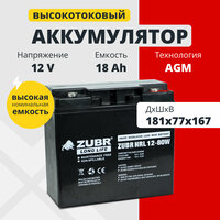 Аккумулятор для ибп ZUBR HRL AGM 12v 18ah – устройство, предназначенное для обеспечения стабильного электропитания при отключении основного источника энергии. Бесперебойник для дома, компьютера играет важную роль в защите оборудования от потерь данных и повреждений, вызванных внезапными сбоями электроснабжения. Одним из лидеров на рынке стационарных аккумуляторов 12 вольт является серия ZUBR, гарантирующая надежность и эффективность в работе источников бесперебойного питания. В аккумуляторе AGM 12В электролит абсорбирован в стекловолоконном сепараторе, что обеспечивает герметичность, устойчивость к вибрациям и низкое электрическое сопротивление. Они отличаются высокой стойкостью к глубокому разряду, большим количеством циклов перезаряда, прочным корпусом. Аккумуляторы для детской машины, мотоцикла, электромобиля являются безопасными для человека и окружающей среды, поскольку не выделяют вредных паров и не подвержены вытеканию электролита. Еще одно преимущество аккумуляторов для машинки на радиоуправлении – их можно монтировать в произвольном положении под наклоном, даже в перевернутом состоянии. Аккумуляторы для бесперебойника не требуют обслуживания, рекомендованы для использования как в буферном, так и циклическом режимах. Акб для источников резервного питания являются универсальными: кассовые аппараты, кассы, медицинское, торговое оборудование, пк, компьютеры, газовые и электро котлы отопления, аварийное освещение, системы видеонаблюдения, охранная пожарная сигнализация, извещатель, телекоммуникации, связь, промышленные установки, электропастухи, эхолоты 12v, насосы, детские машинки, скутеры, квадроциклы, электромашины, игрушки для ребенка, инвалидные коляски, фонари, фонарики, весы, опрыскиватели садовые умница, осветительные и переносные приборы, солнечные панели и батареи. Регулярно проверяйте состояние и уровень заряда акб для ибп. Перед покупкой уточните рабочие параметры ранее установленной свинцово-кислотной батареи.